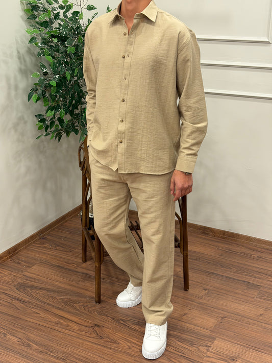 DİL DETYALI KUMAŞ PANTOLON BEJ
