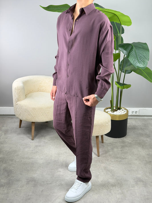 Dabıl Kumaş Gömlekli Oversize Takım ACI KAHVE