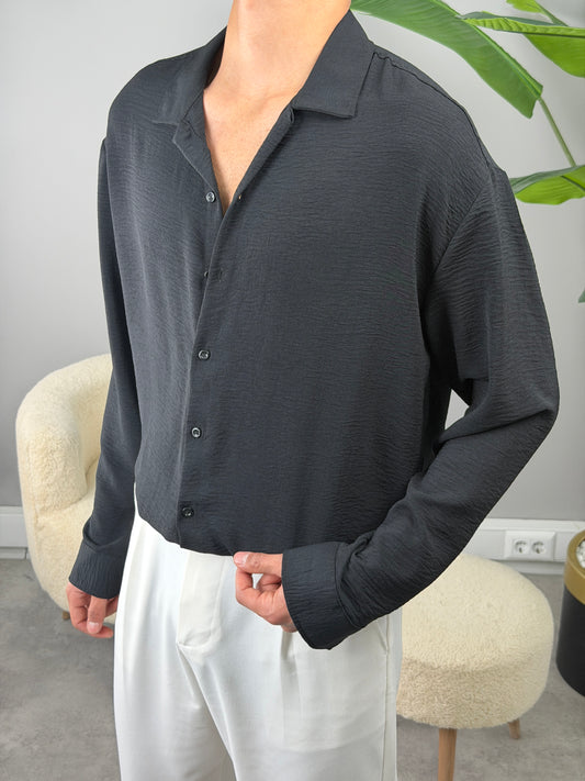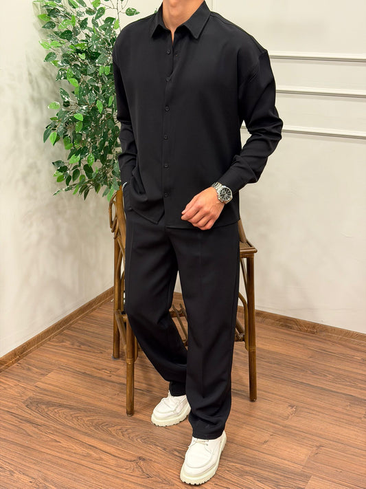 Dabıl Kumaş Gömlekli Oversize Takım SİYAH