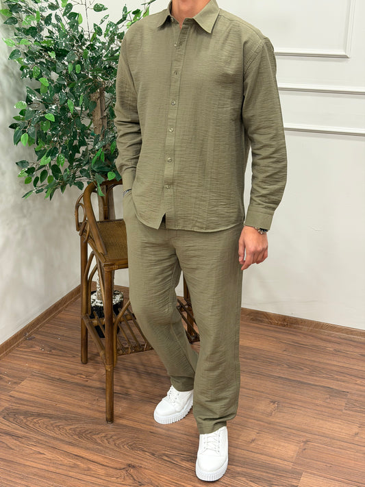 DİL DETAYALI KUMAŞ PANTOLON YEŞİL