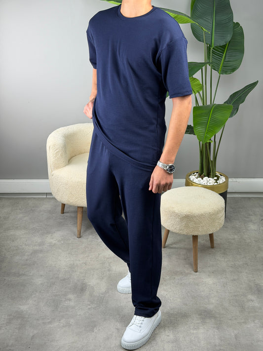 Dabıl Kumaş Gömlekli Oversize Takım LACİVERT