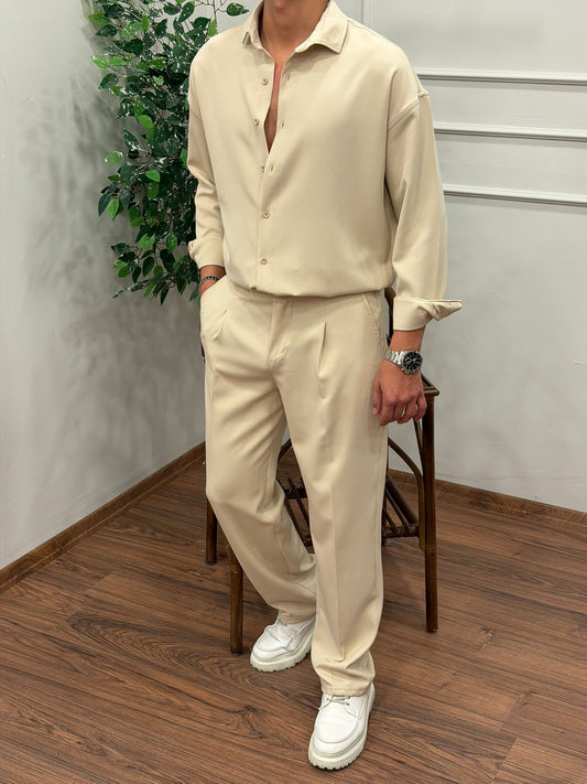 Dabıl Kumaş Gömlekli Oversize Takım BEJ