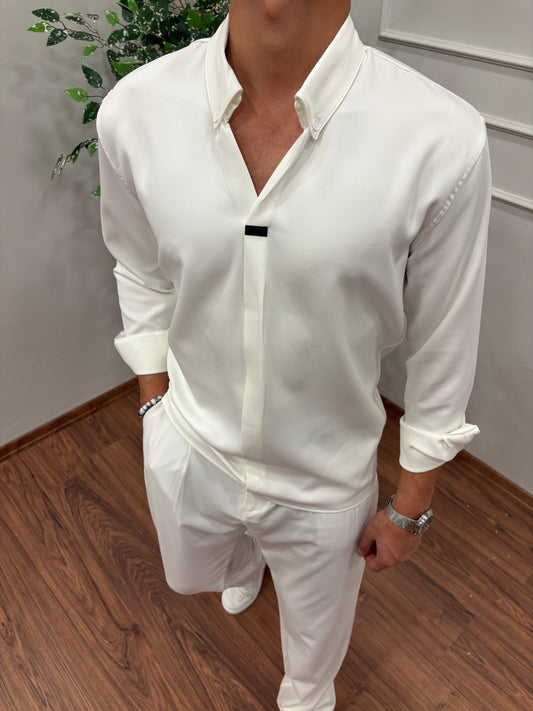 VİSKON KUMAŞ GÖMLEKLİ TAKIM BEYAZ