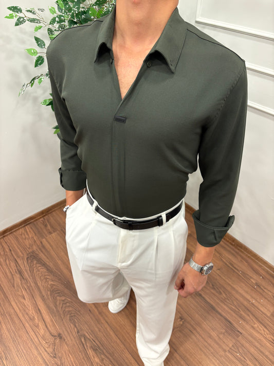 VİSKON KUMAŞ GÖMLEKLİ TAKIM HAKİ YEŞİLİ