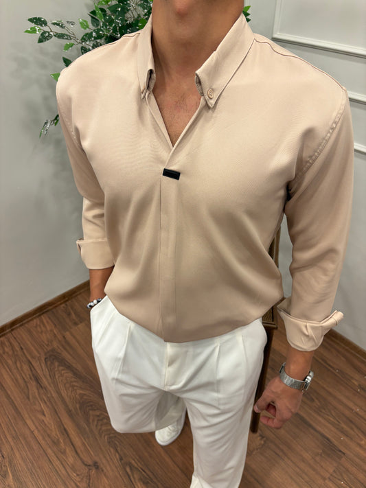 VİSKON KUMAŞ GÖMLEKLİ TAKIM BEJ