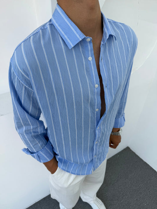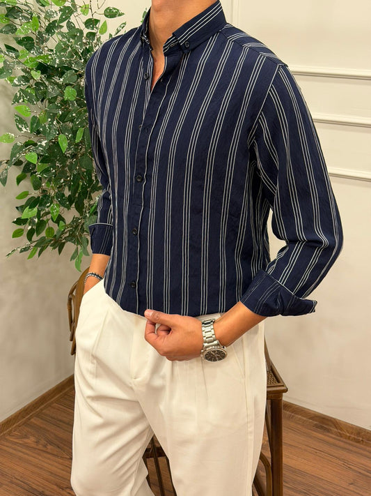 TENSEL KUMAŞ ÇİZGİLİ GÖMLEK LACİVERT