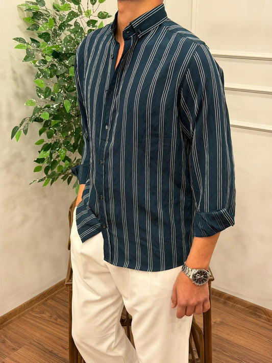 TENSEL KUMAŞ ÇİZGİLİ GÖMLEK PETROL YEŞİLİ