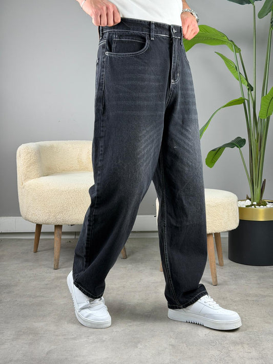 Süper Baggy Kot Pantolon BEYAZ İPLİK SİYAH