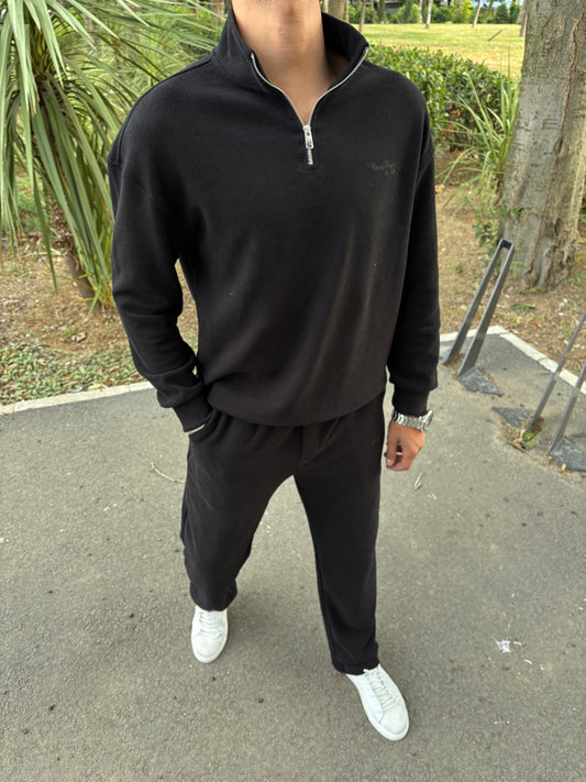 PAMUK ÖRME YARIM FERMAUR TAKIM SİYAH