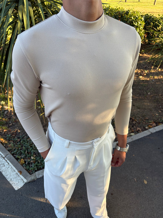 YARIM FERMAUAR TRİKO SWEATSHİRT BEJ