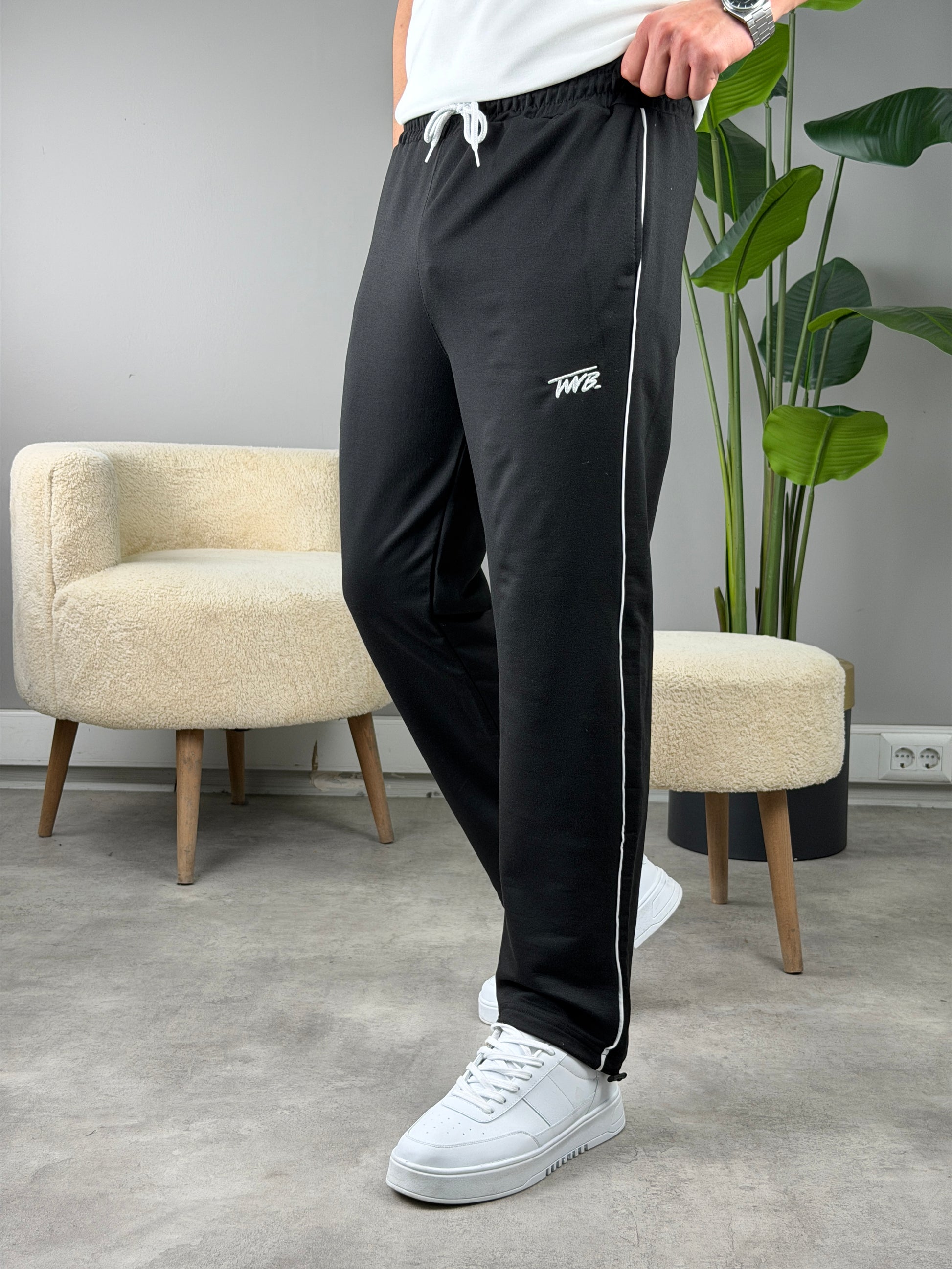 2 İplik Şeritli Baggy Eşofman SİYAH