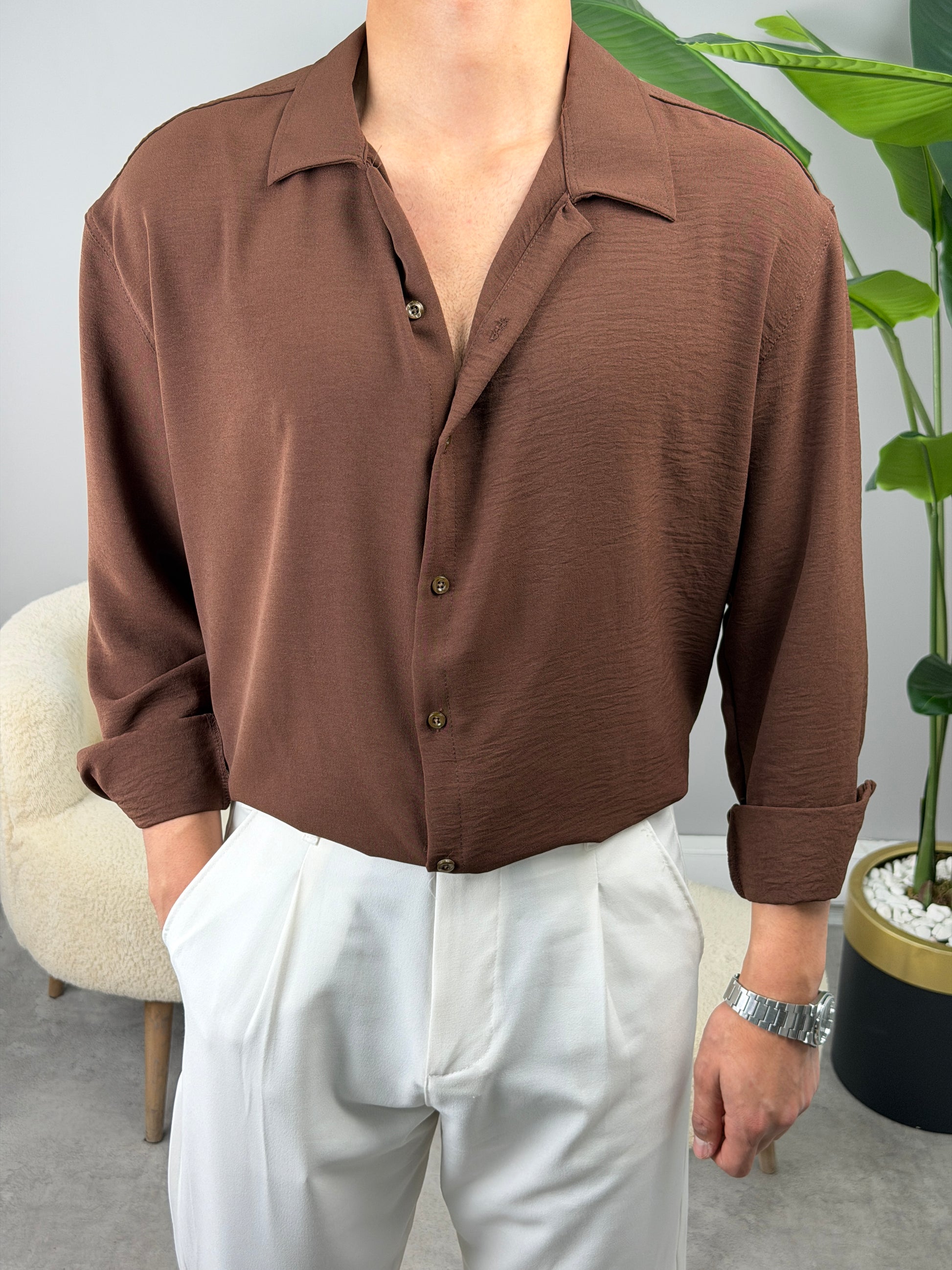 AEROBİN KUMAŞ UZUNKOL PREMİUM GÖMLEK KAHVE