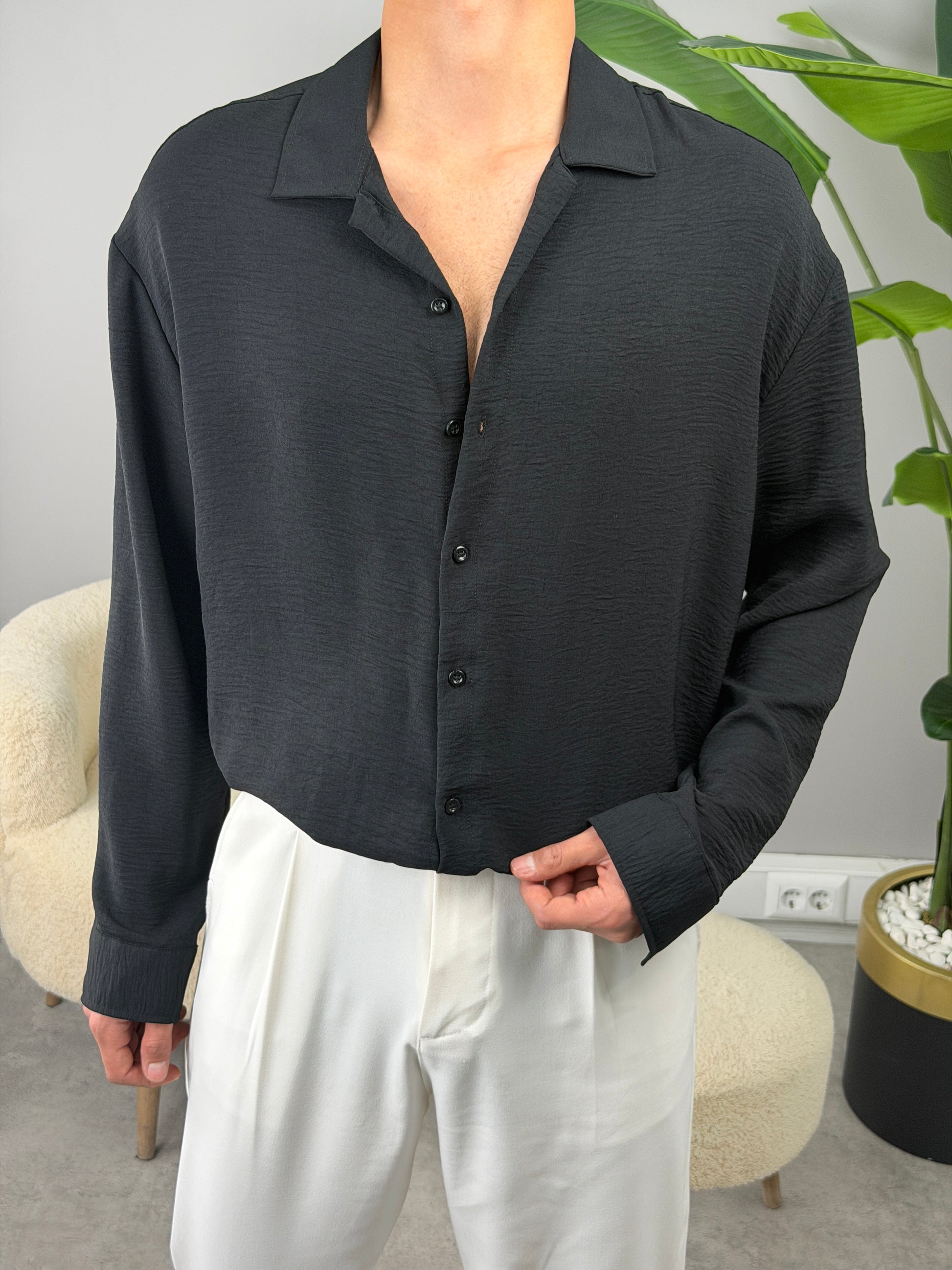 AEROBİN KUMAŞ UZUNKOL PREMİUM GÖMLEK SİYAH
