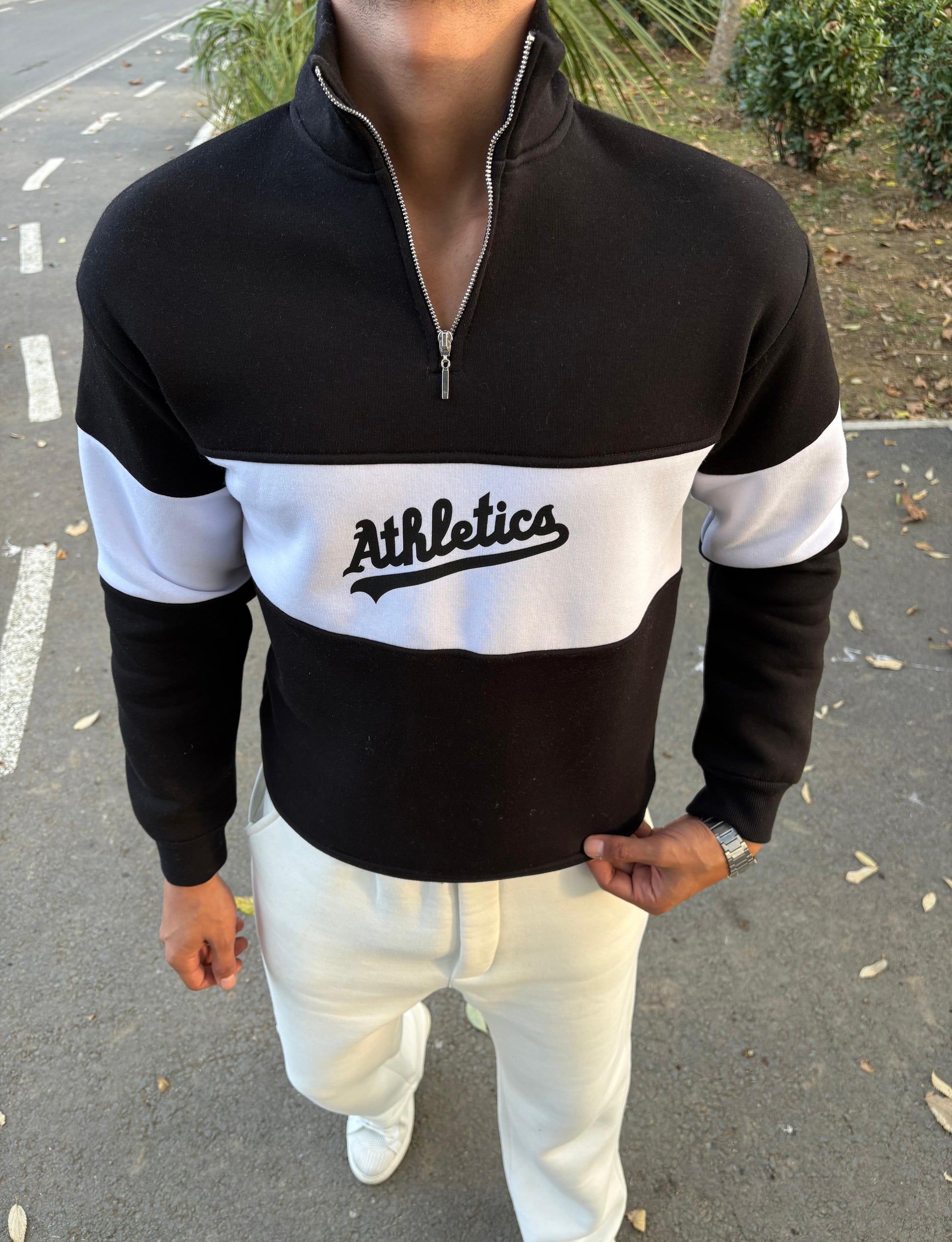 Athletics BASKILI ÜÇ İPLİK ŞARDONLU YARIM FERMUAR SWEATSHİRT SİYAH