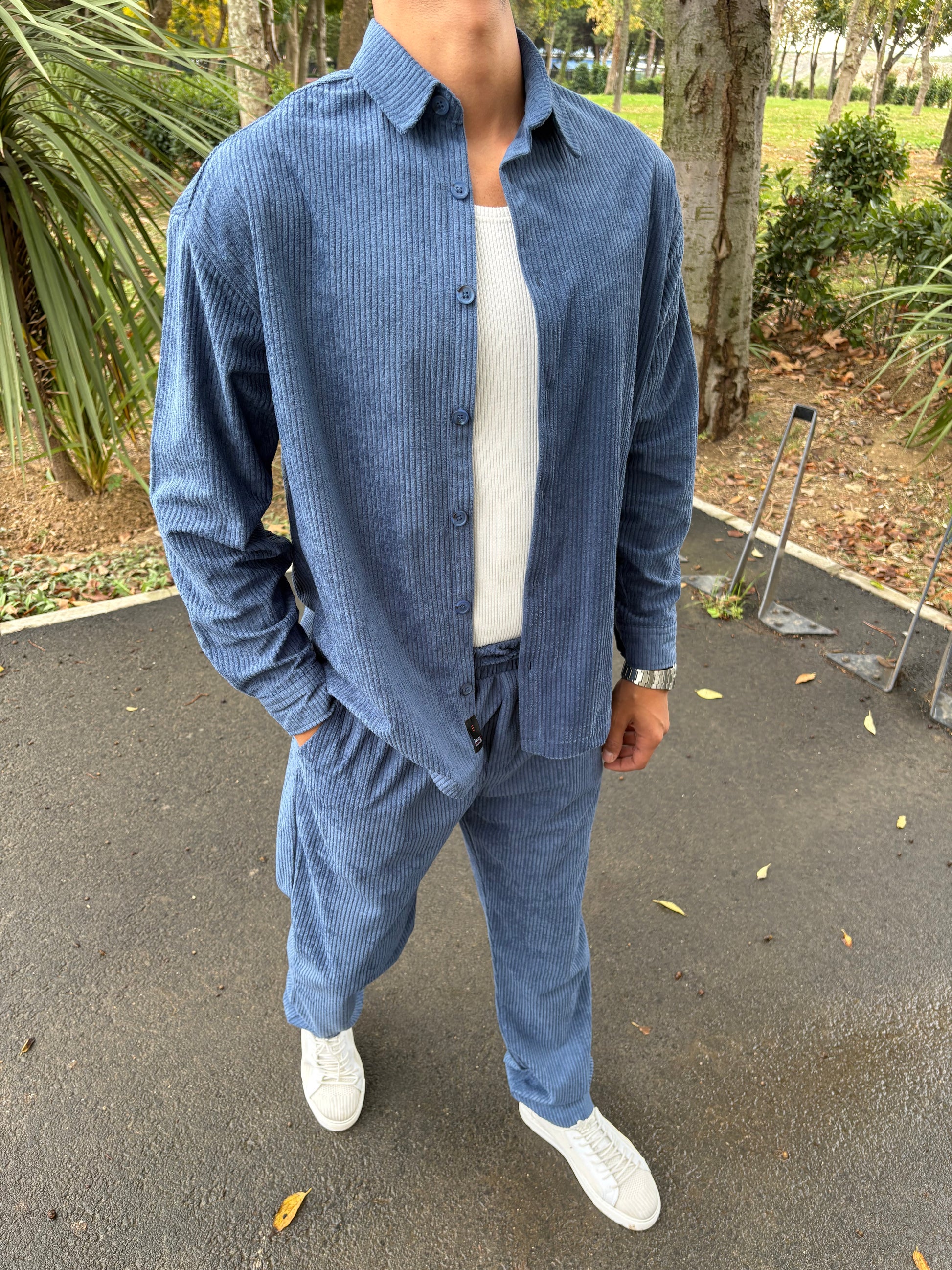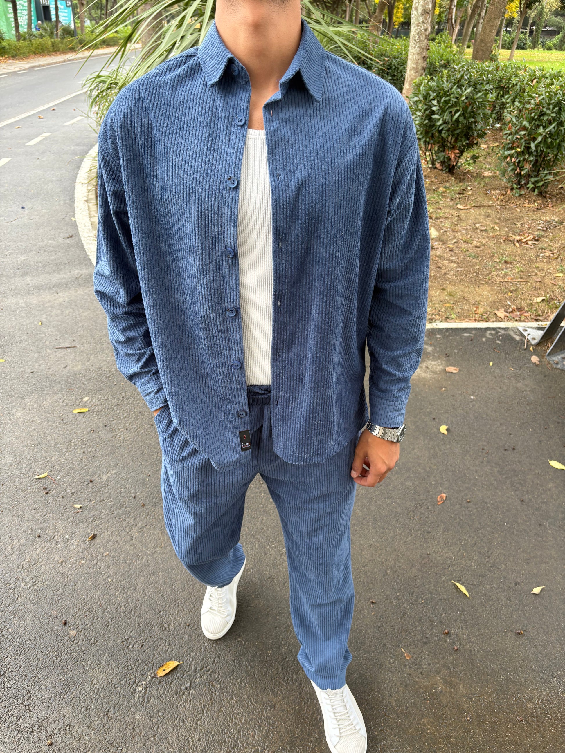 BAGGY KALIP GÖMLEKLİ KADİFE TAKIM MAVİ