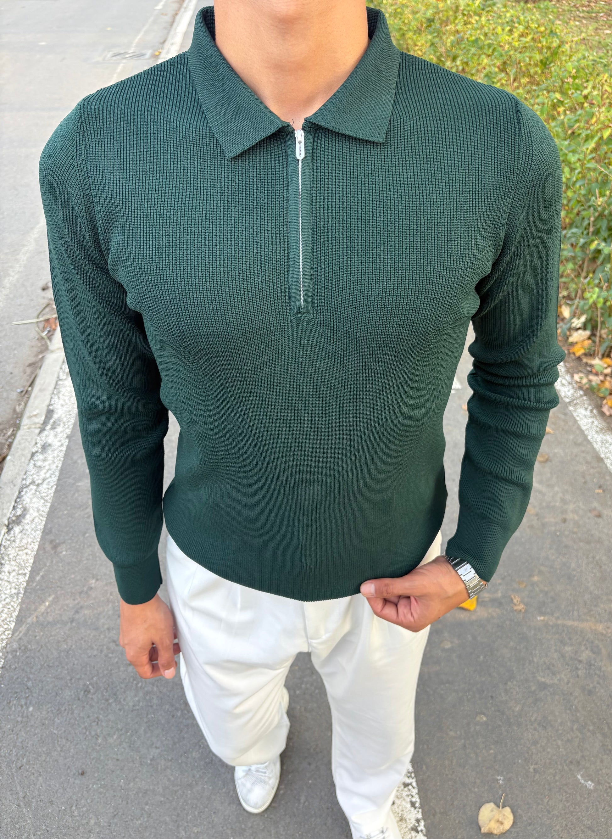 ÇELİK ÖRME YARIM FERMUARLI POLO YAKA SWEATSHİRT YEŞİL