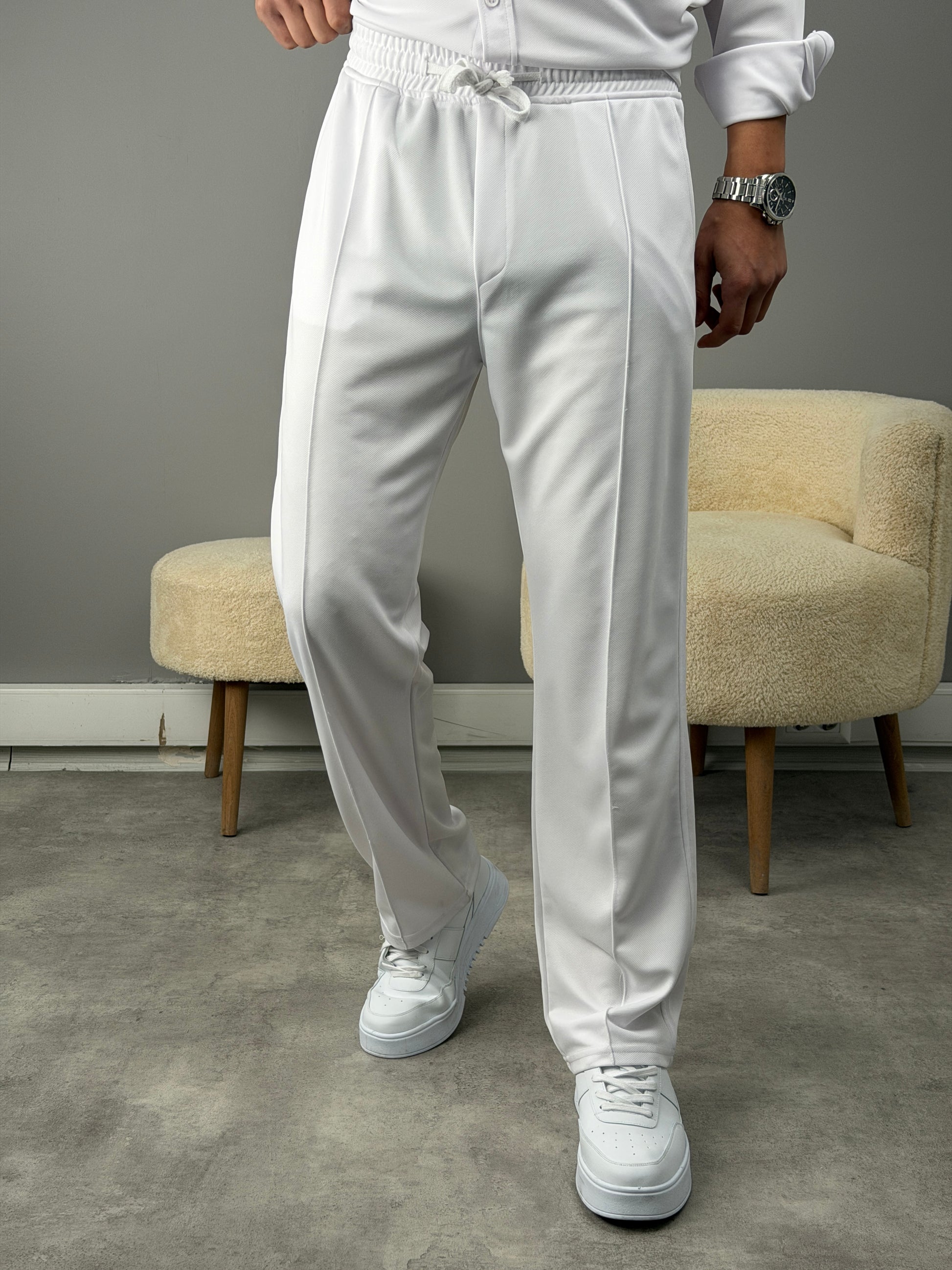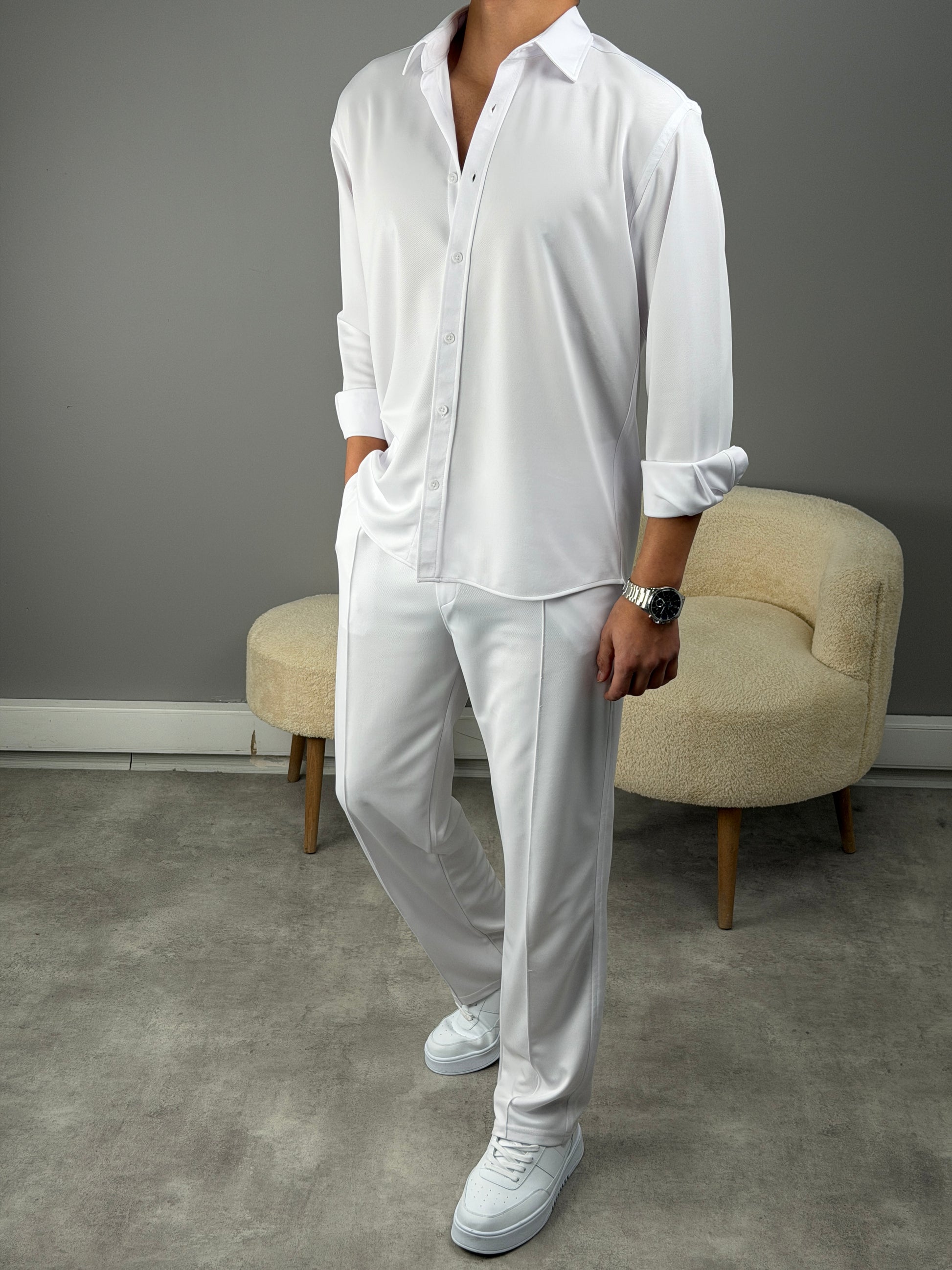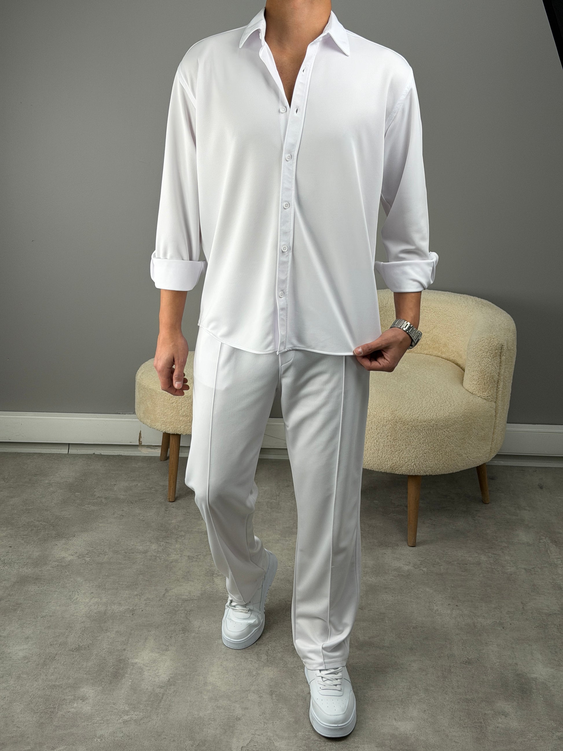 ÇİMA DETAYLI OVERSİZE GÖMLEKLİ TAKIM BEYAZ