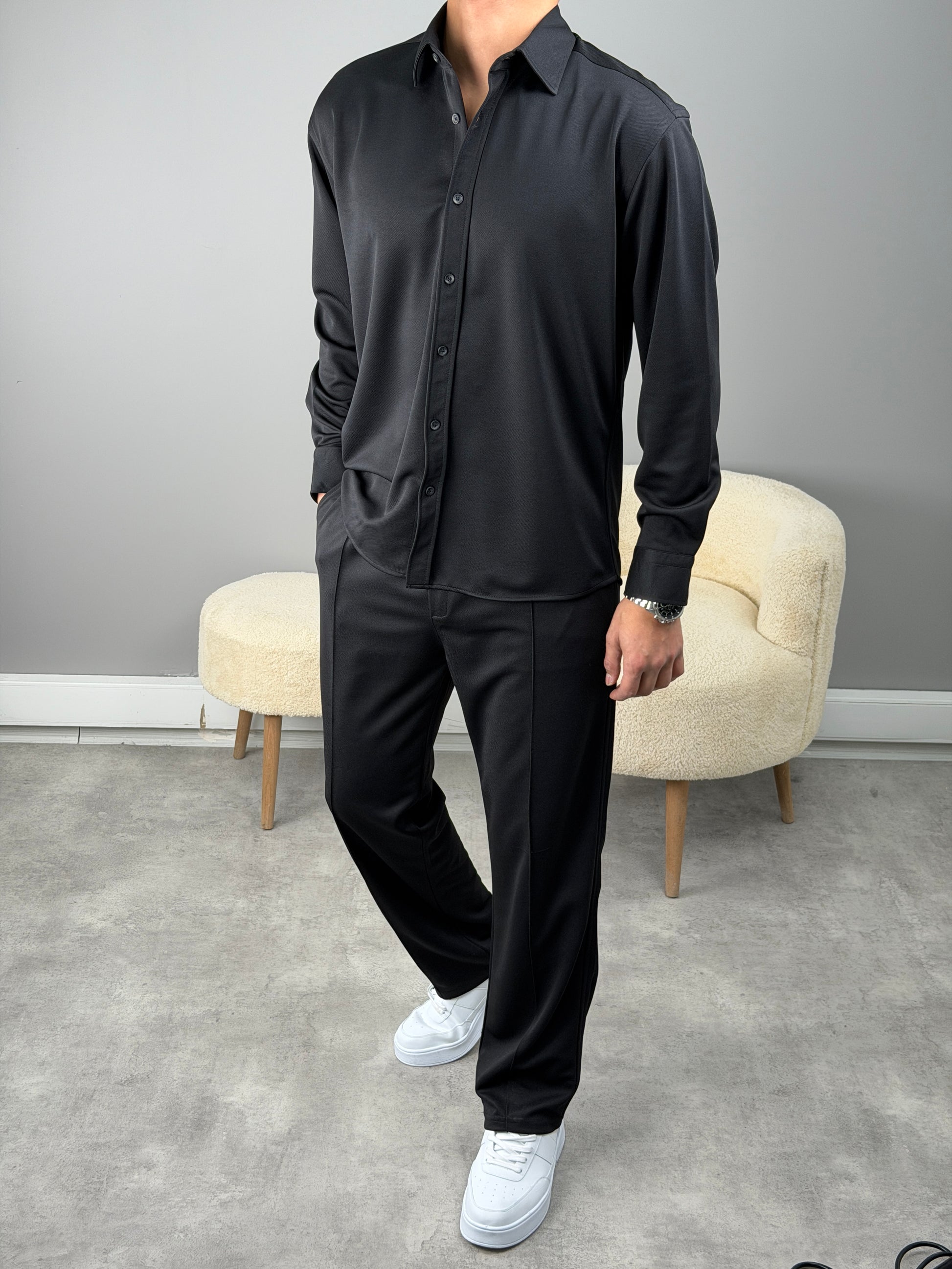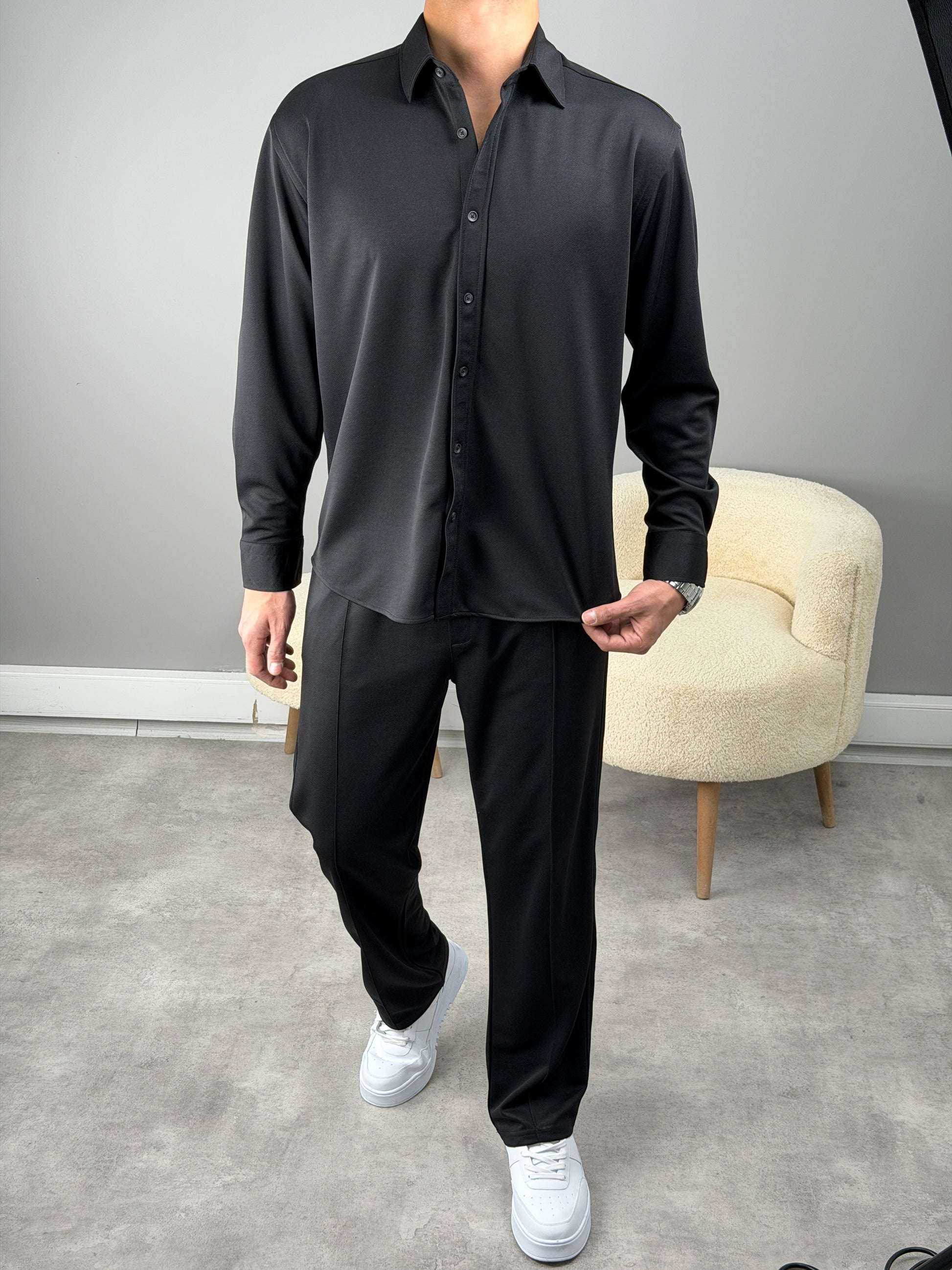 ÇİMA DETAYLI OVERSİZE GÖMLEKLİ TAKIM SİYAH