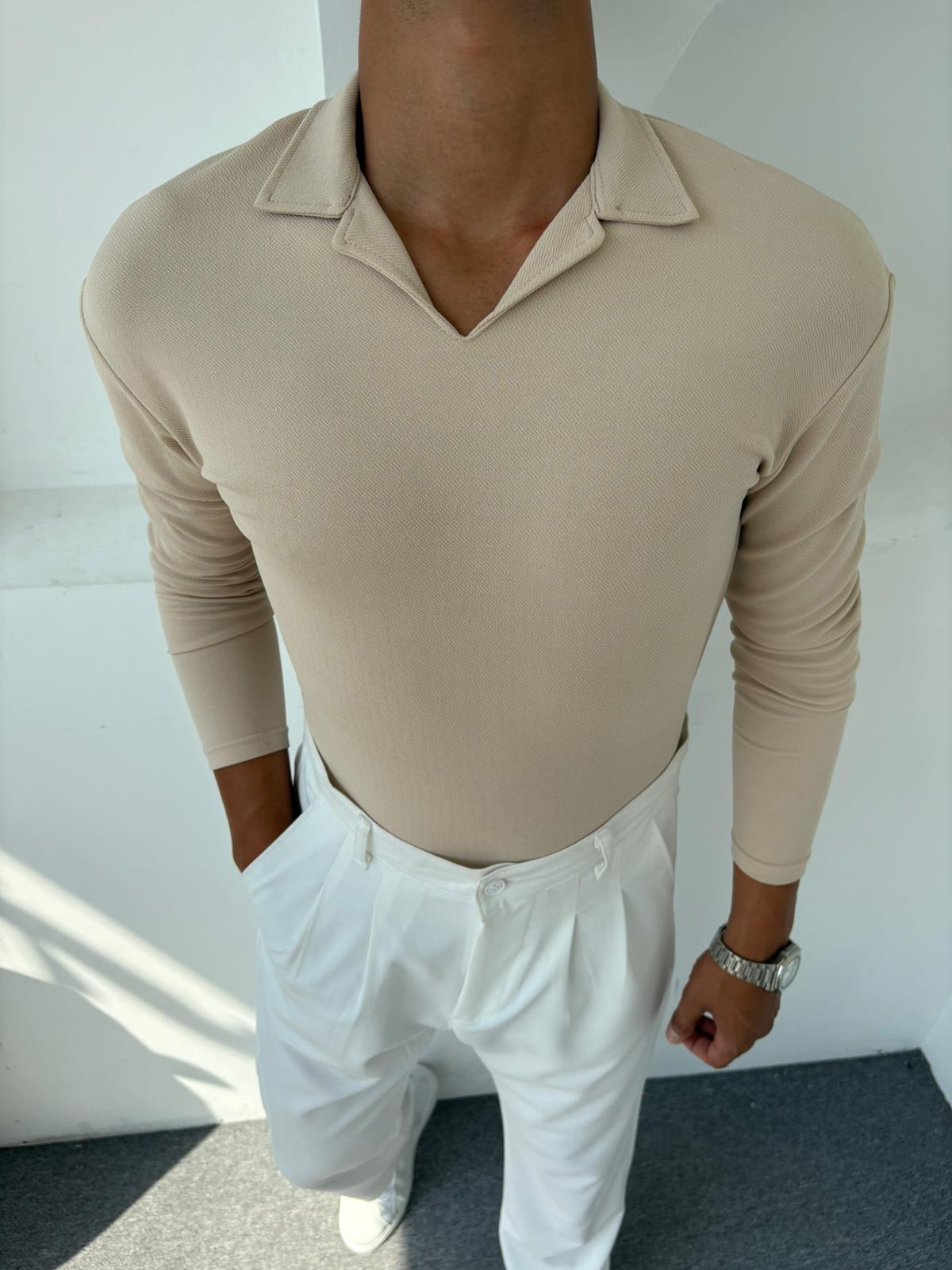 CRAP KUMAŞ HEMŞİRE YAKA SWEATSHİRT BEJ