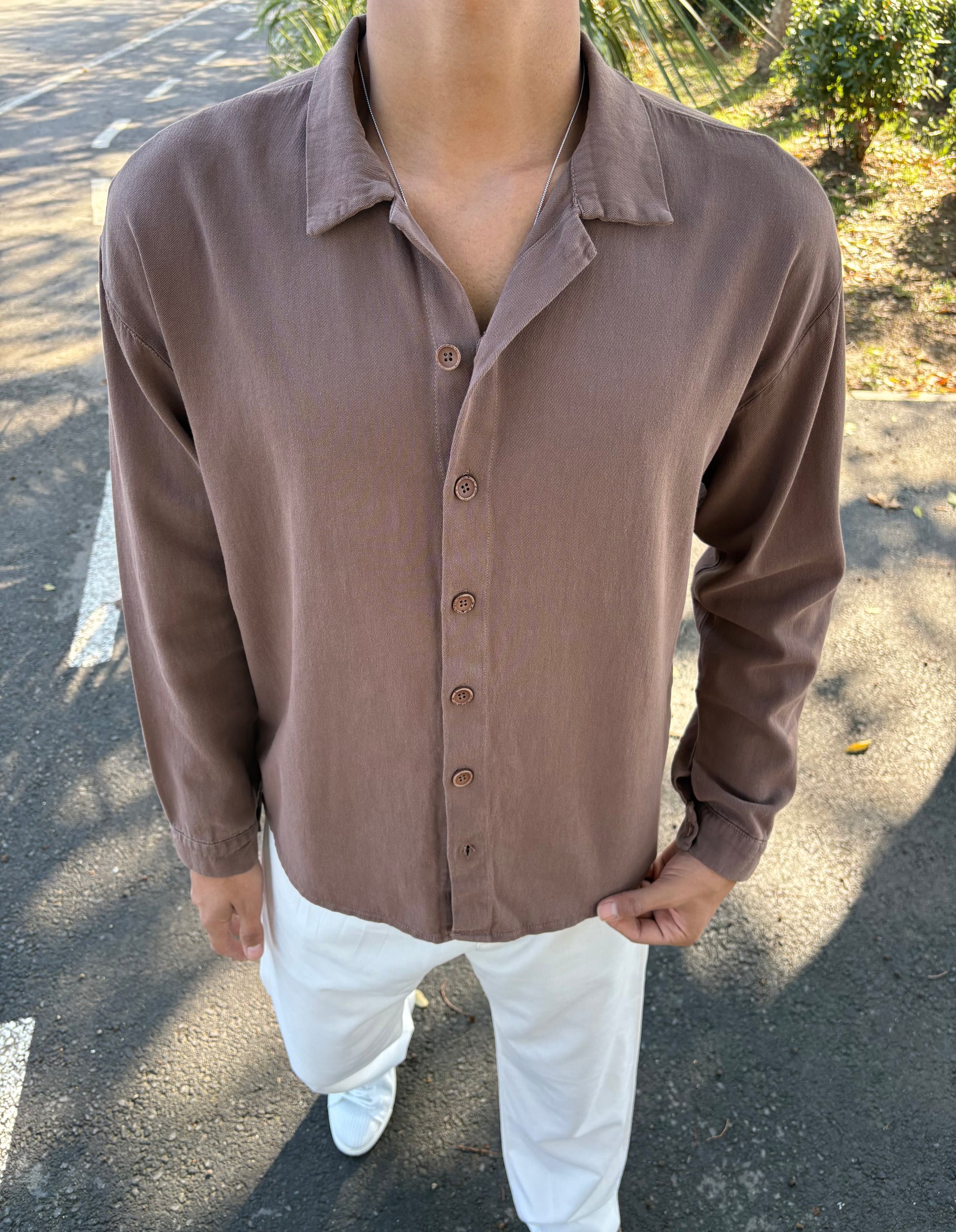 GRAMAJLI HAM KETEN GÖMLEK KAHVE