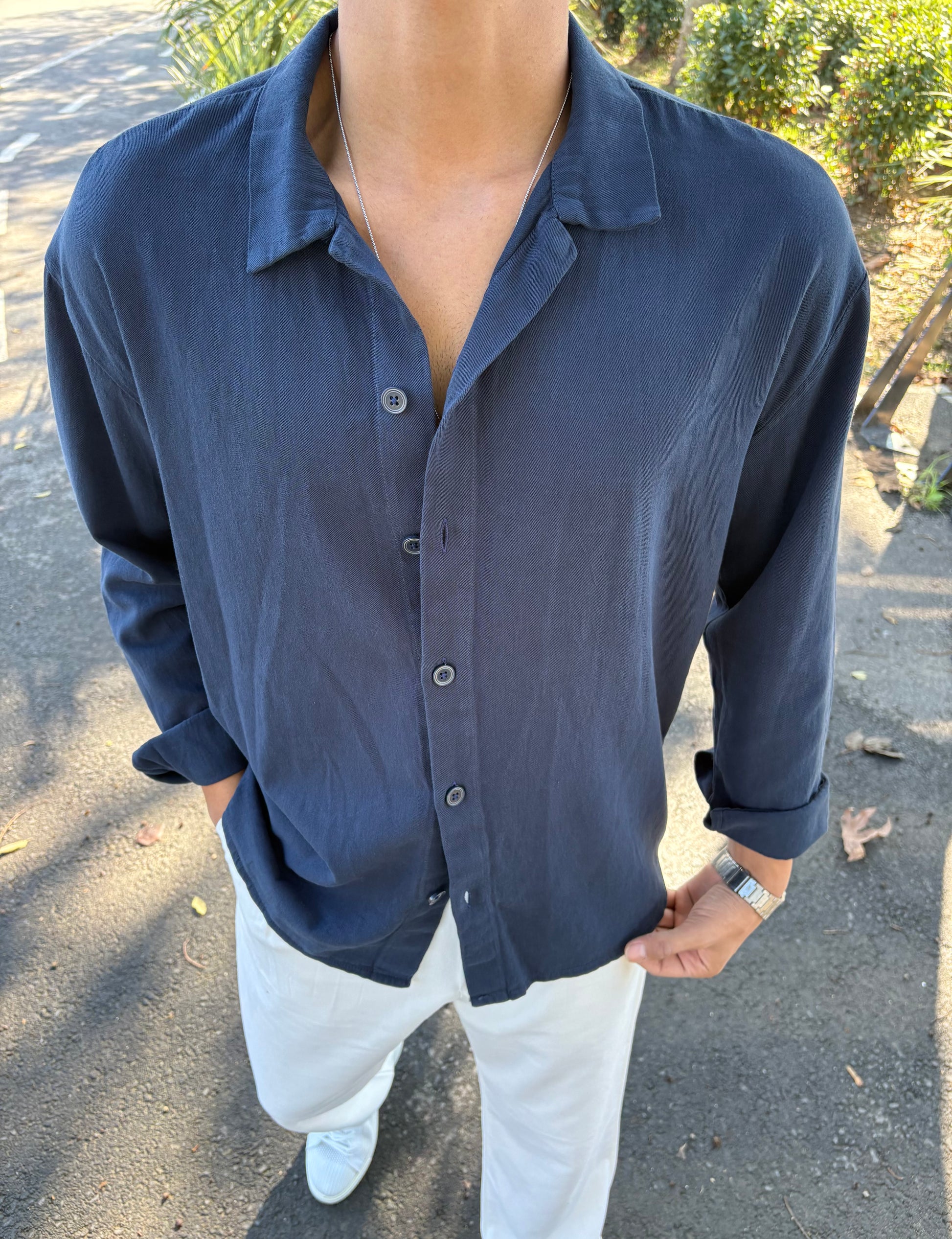 GRAMAJLI HAM KETEN GÖMLEK LACİVERT