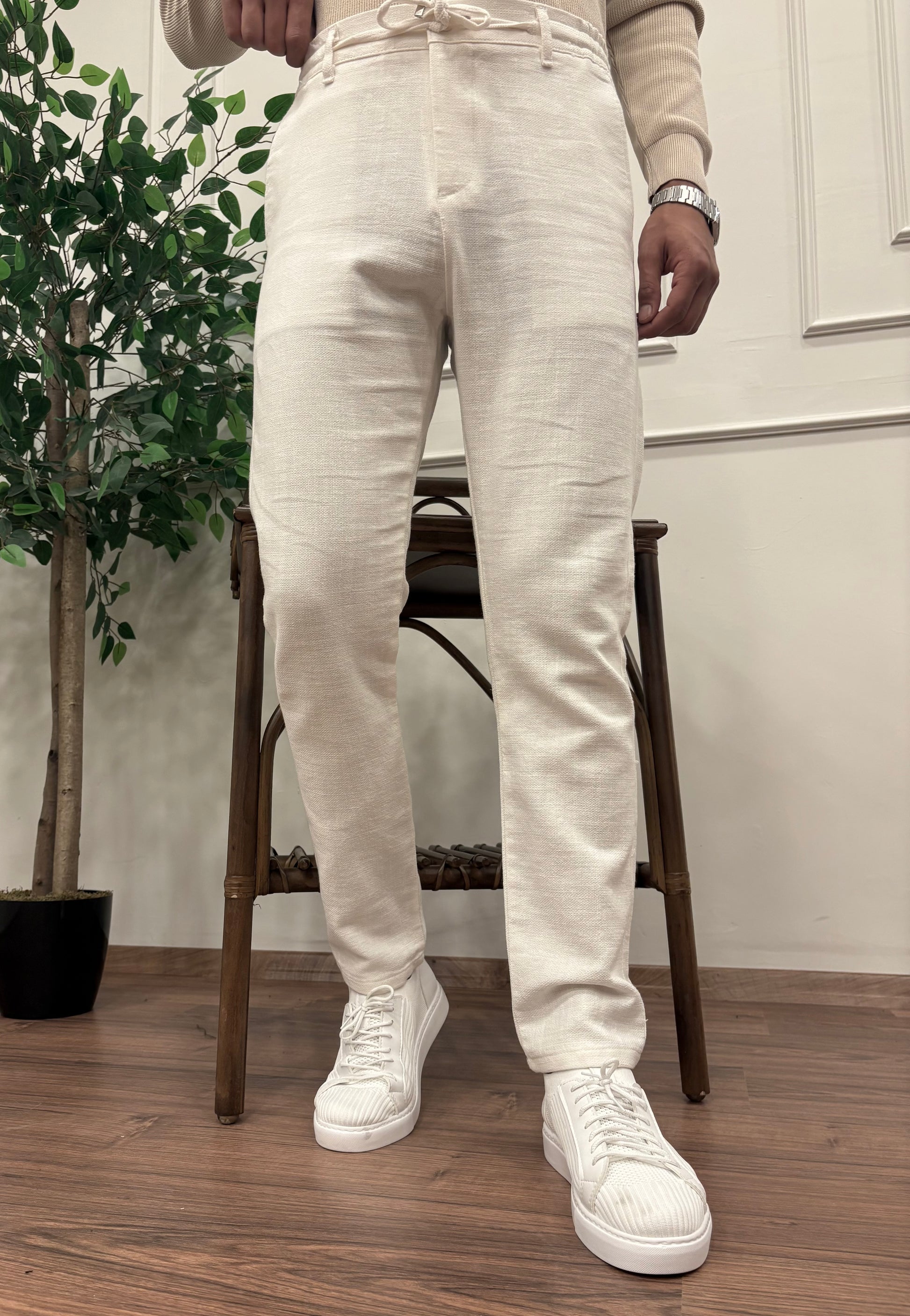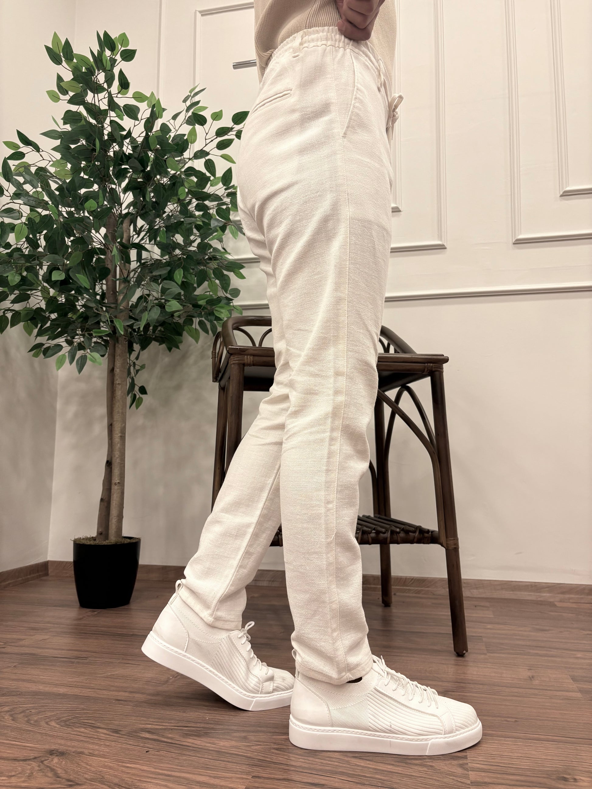 GRAMAJLI KIŞLIK REGULAR KETEN PANTOLON BEYAZ