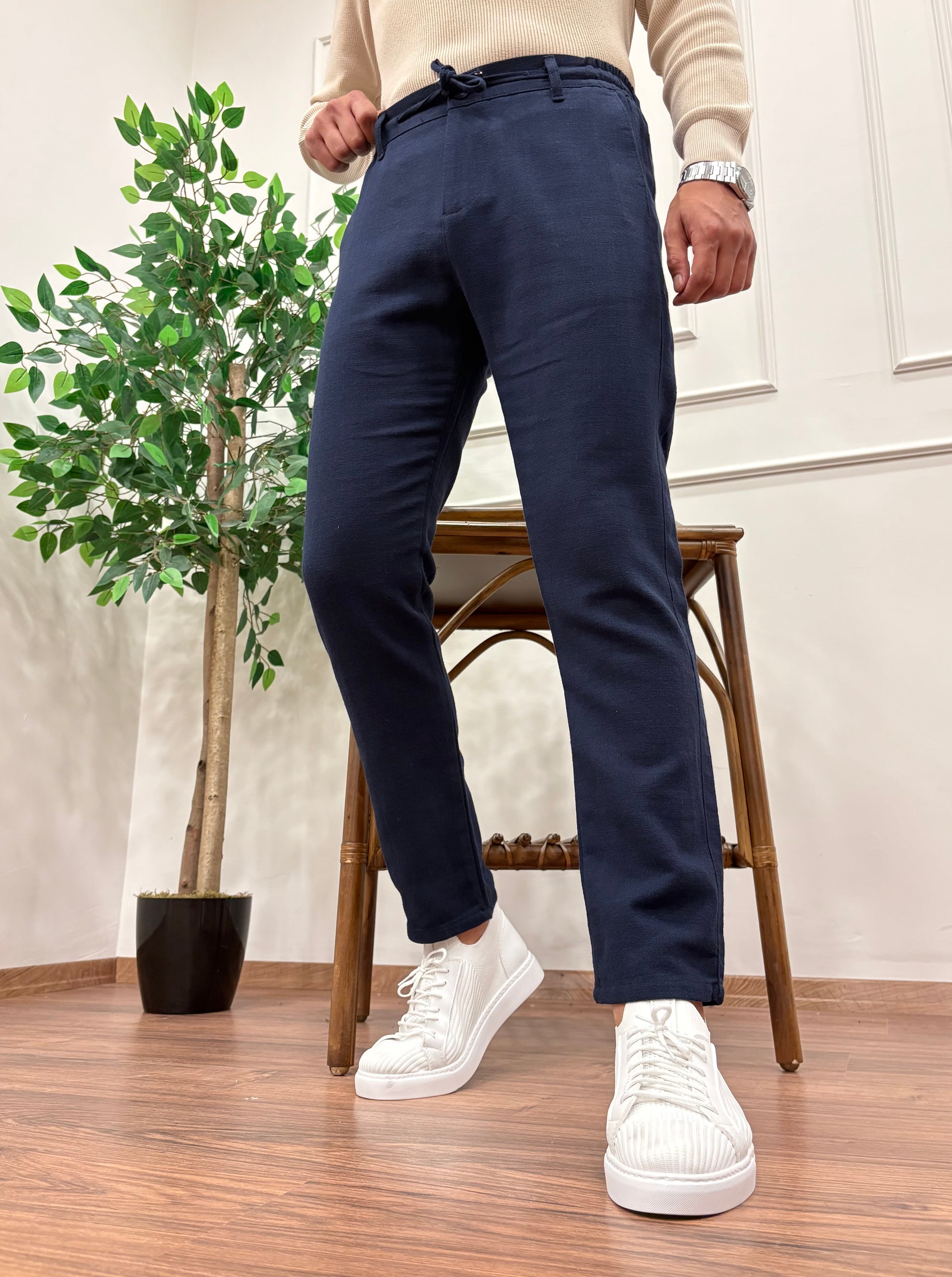 GRAMAJLI KIŞLIK REGULAR KETEN PANTOLON LACİVERT