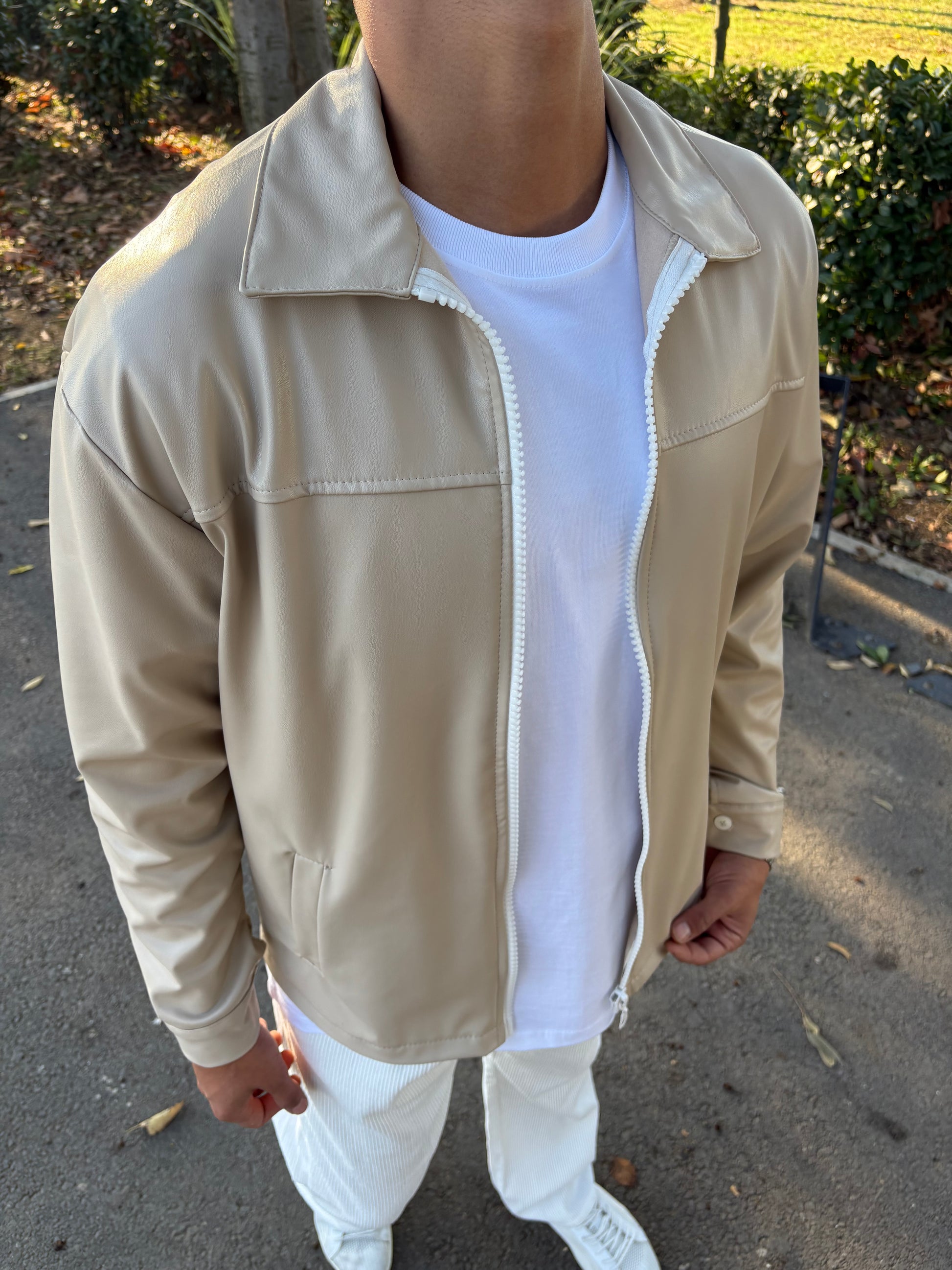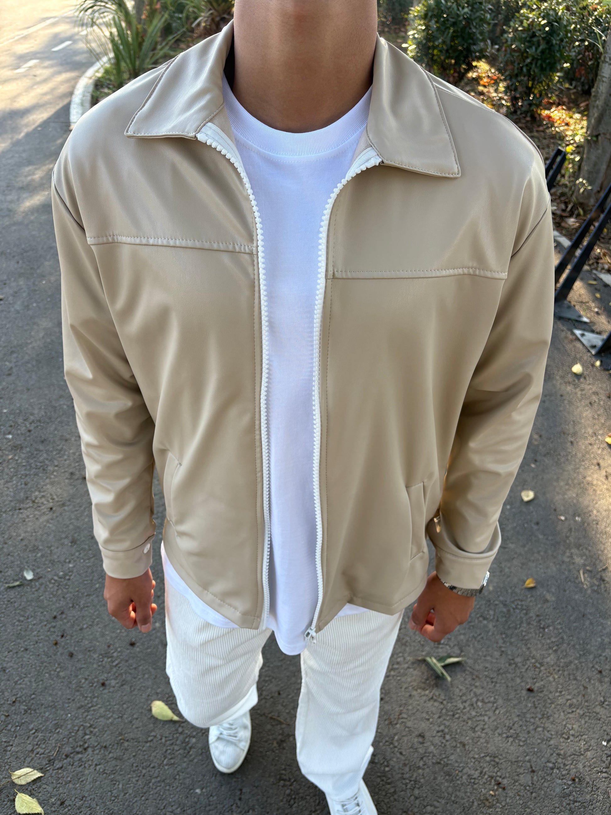 İÇİ ŞARDONLU DERİ CEKET BEJ
