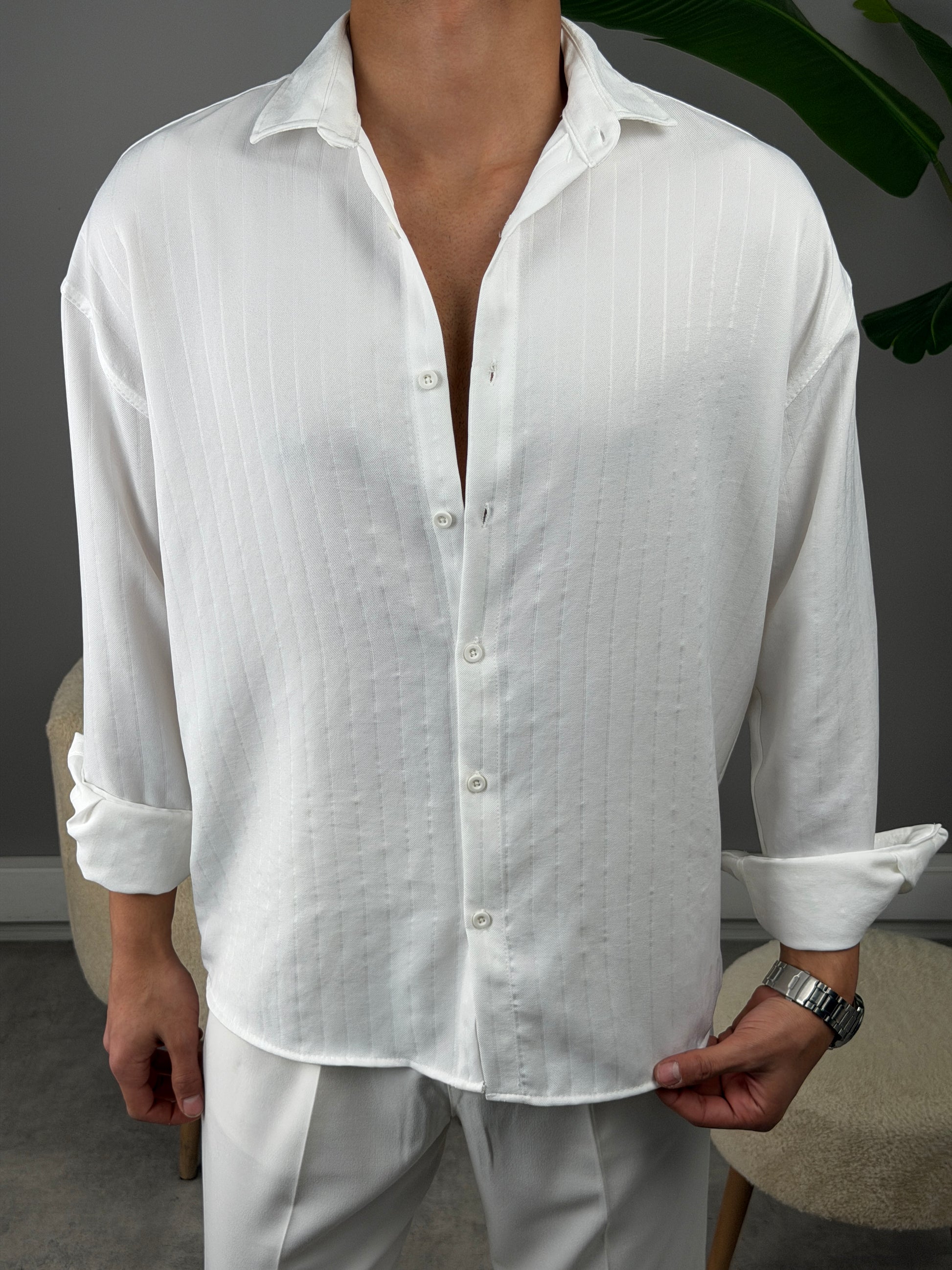 İNCE FİTİL DETAYLI KETEN GÖMLEK BEYAZ