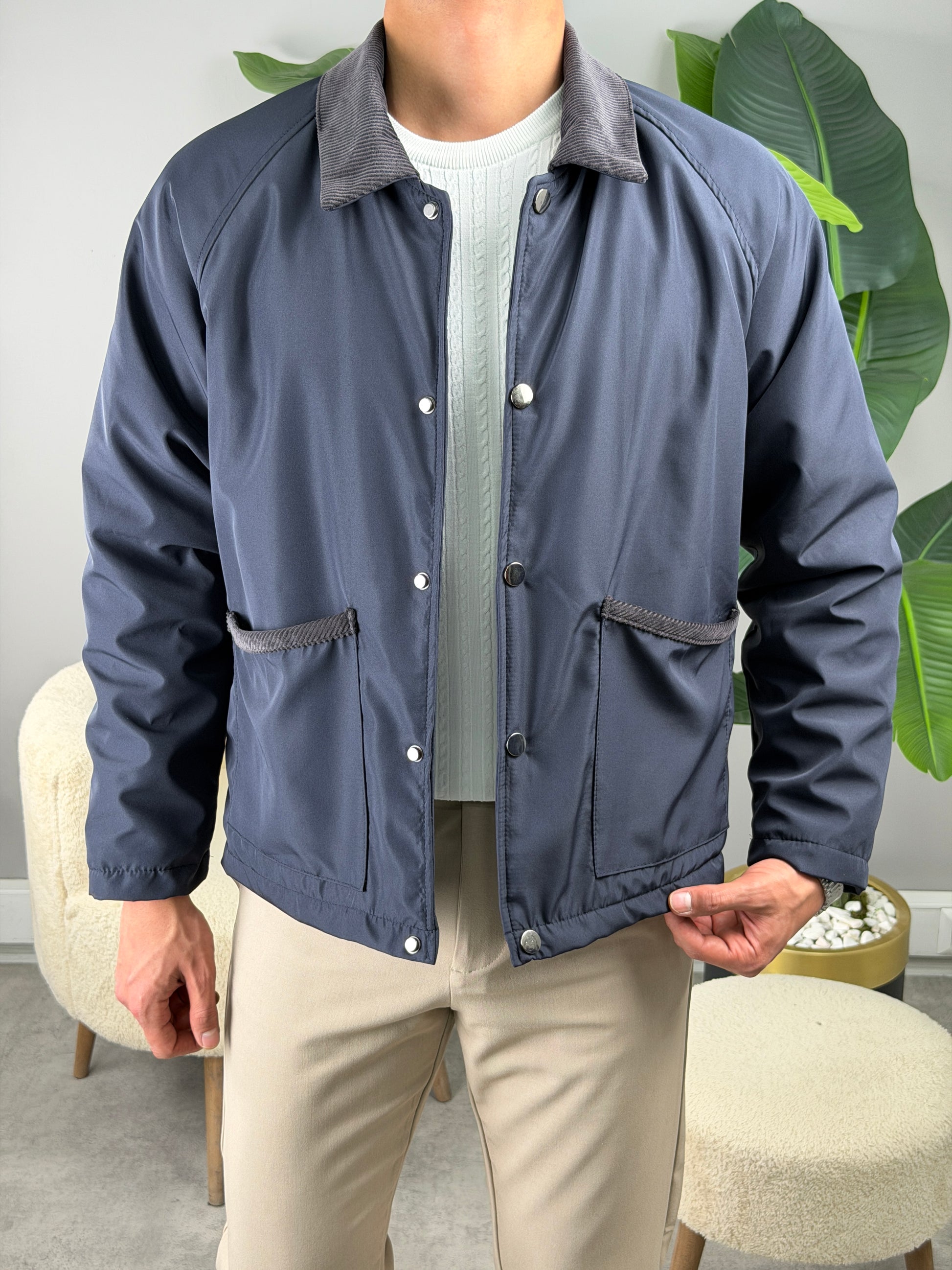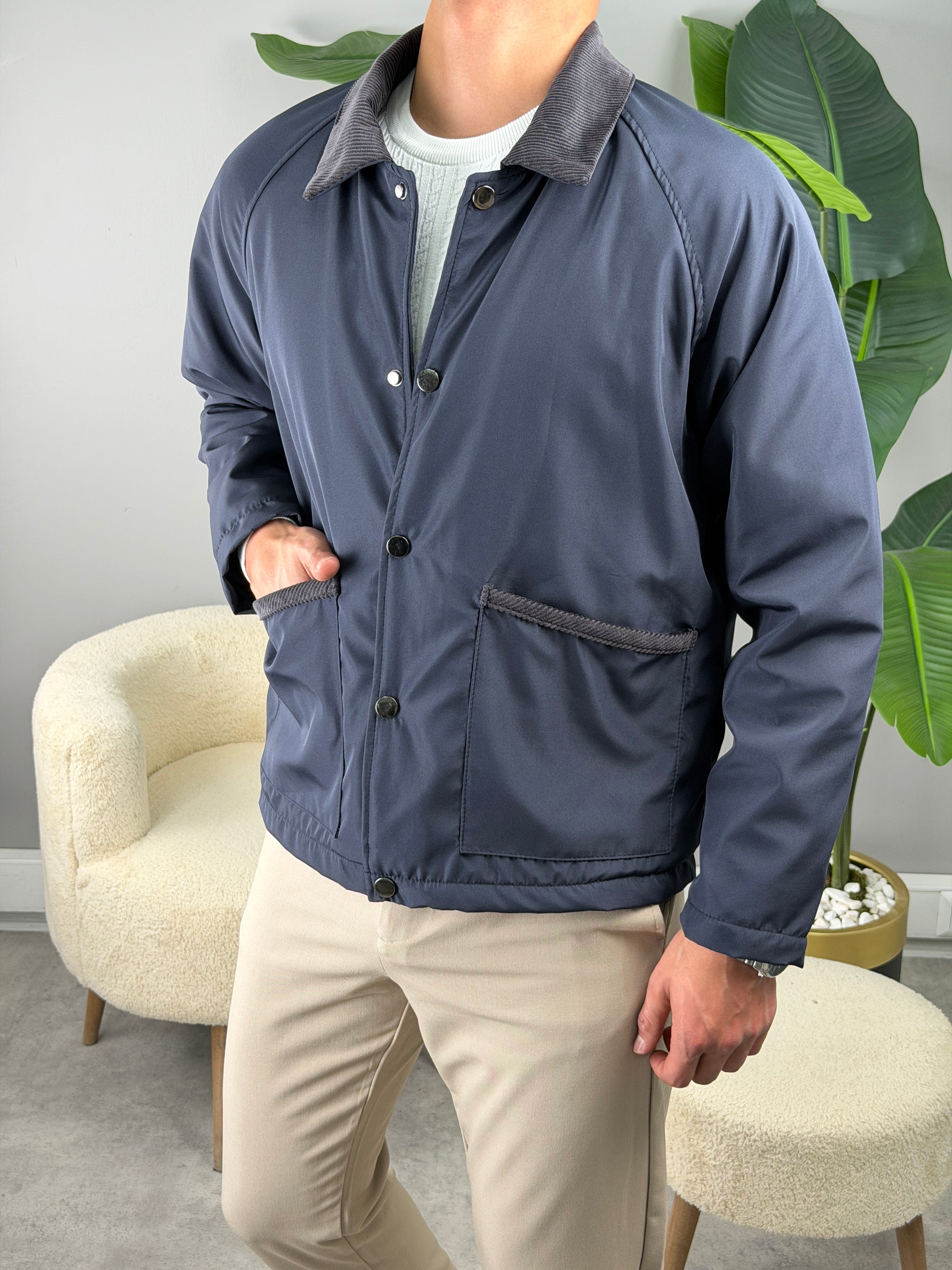 KADİFE YAKA MEVSİMLİK CEKET LACİVERT