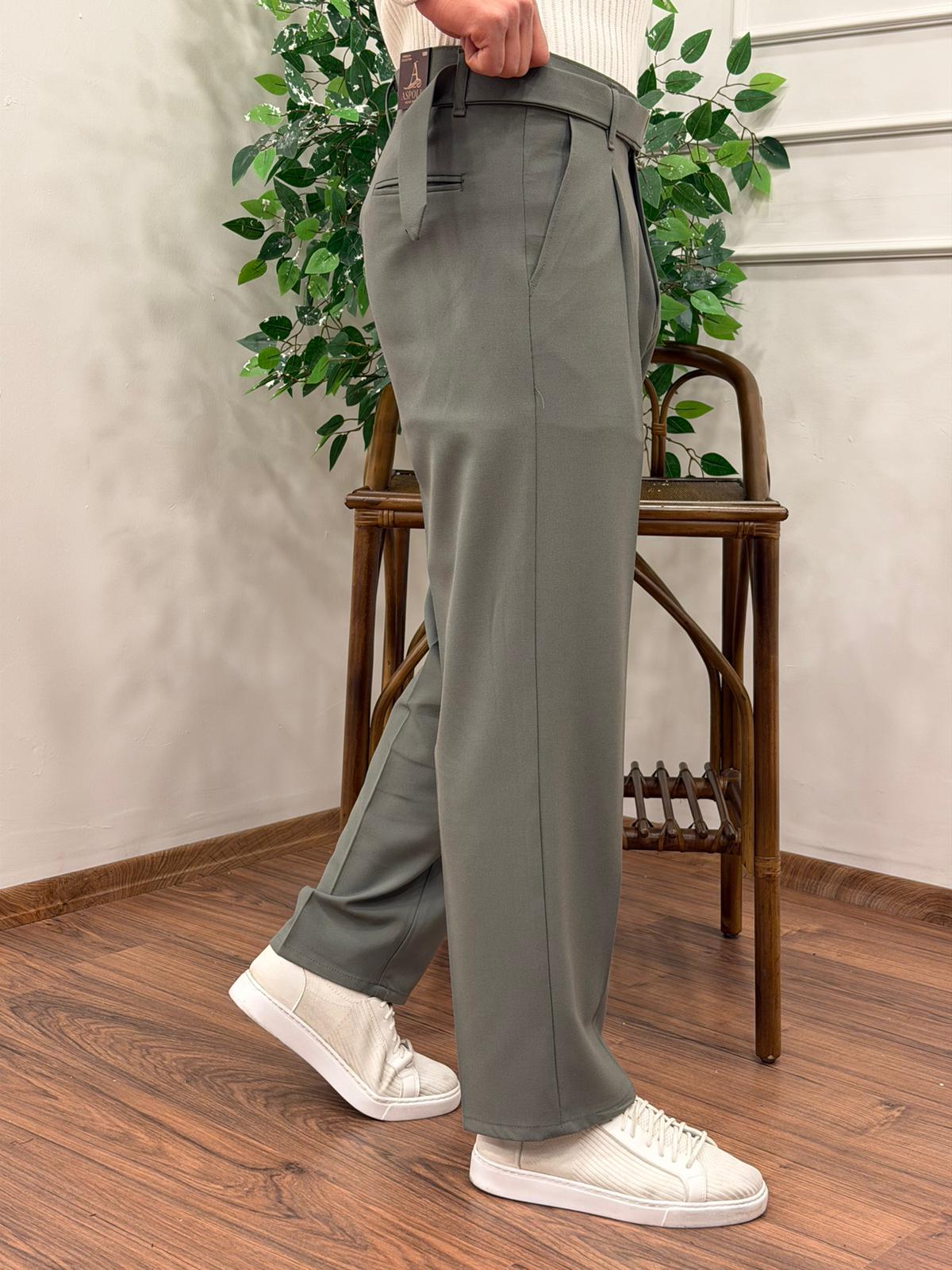 KENDİNDEN KEMERLİ KUMAŞ BAGGY PANTOLON ÇAĞLA YEŞİLİ