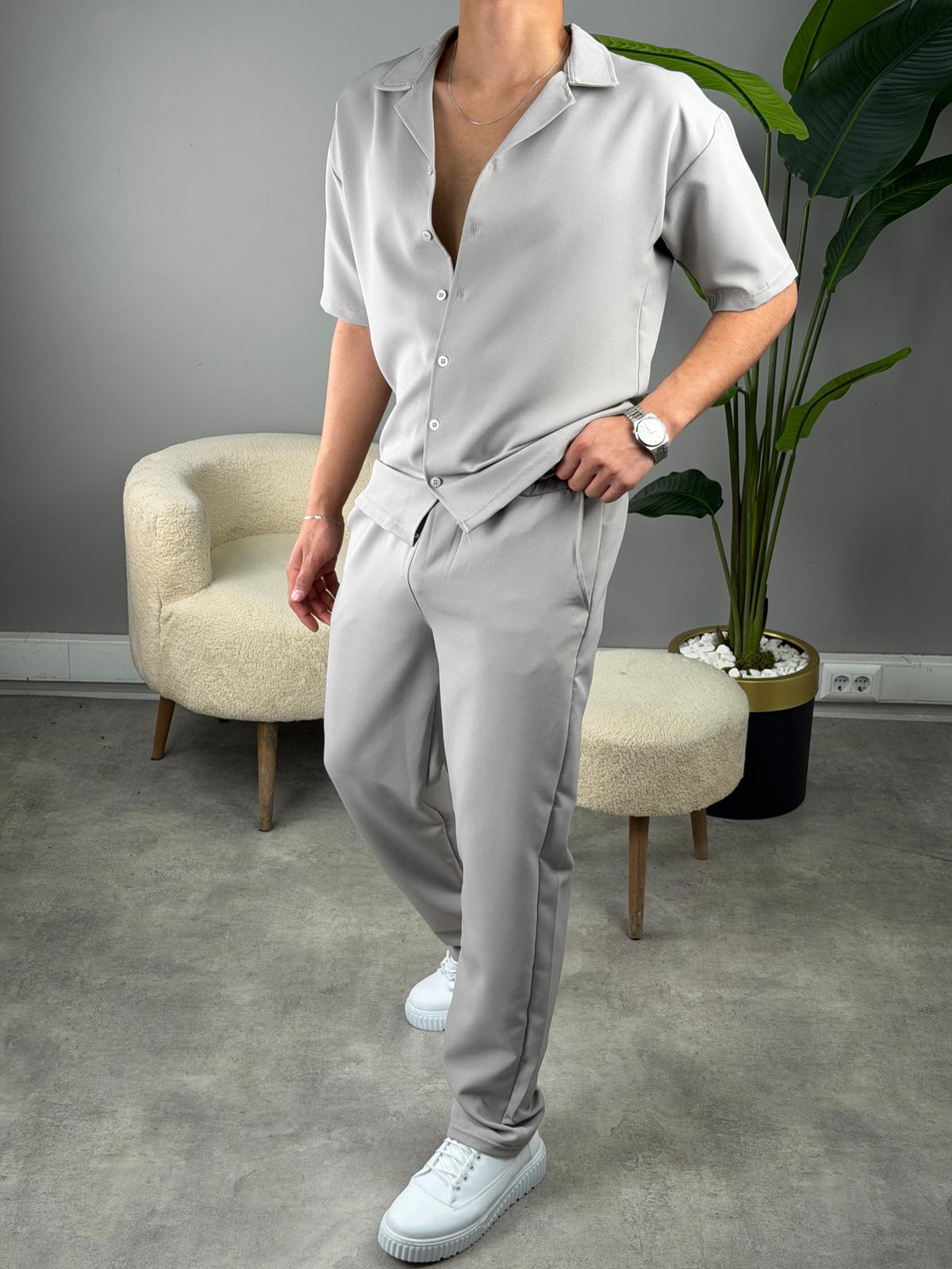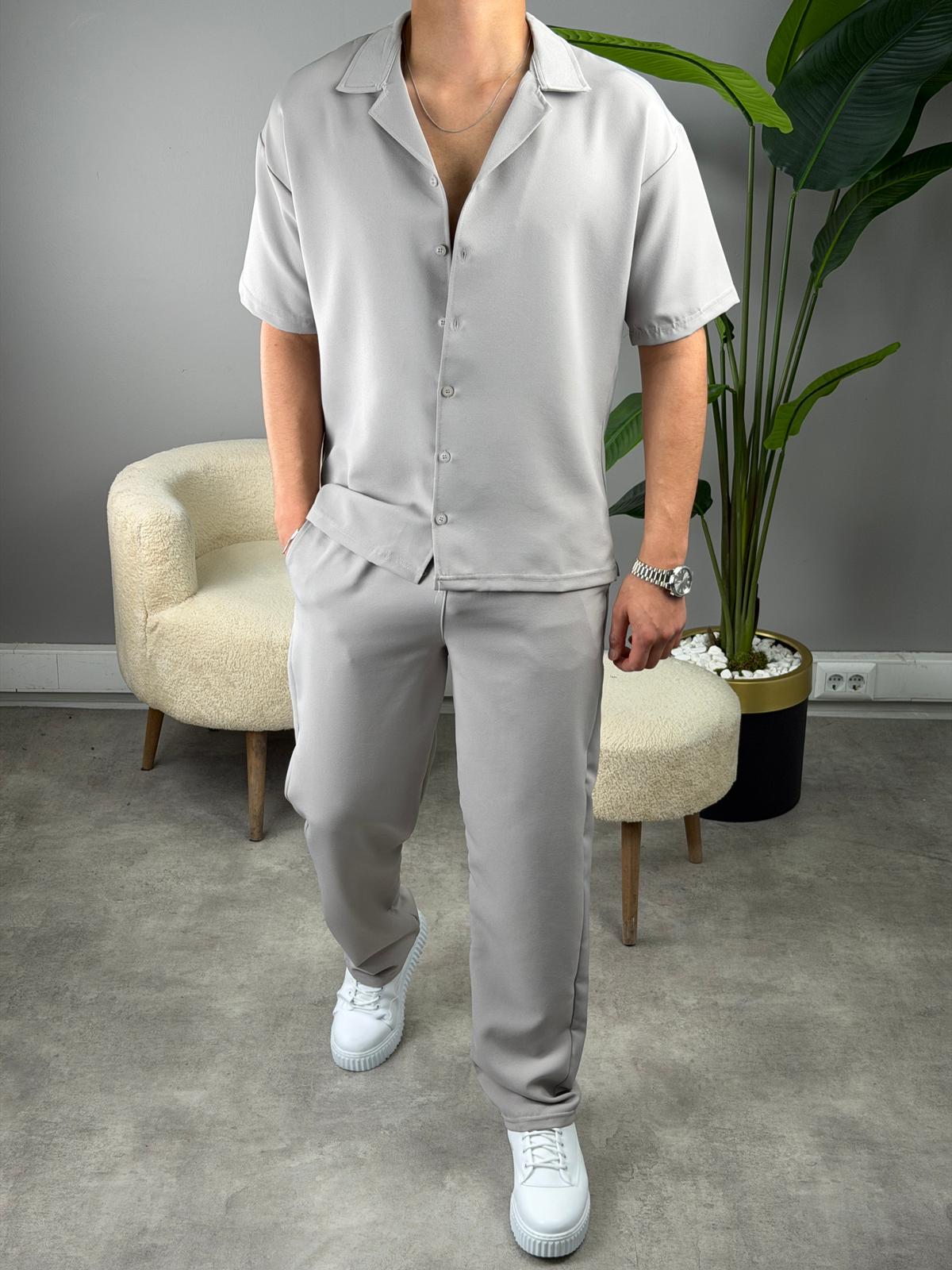 Kısa Kol Dabıl Kumaş Gömlekli Oversize Takım ANTRASİT