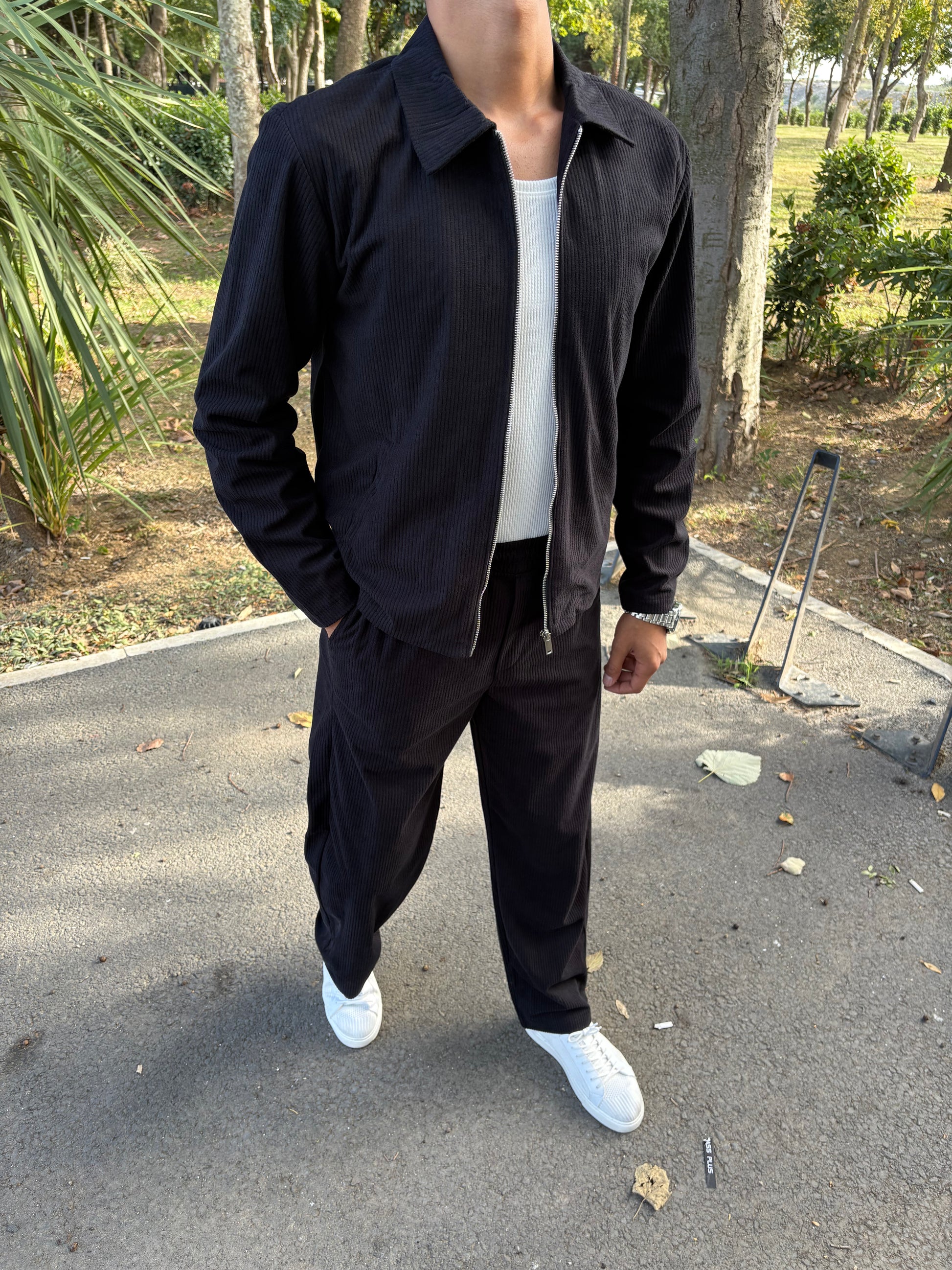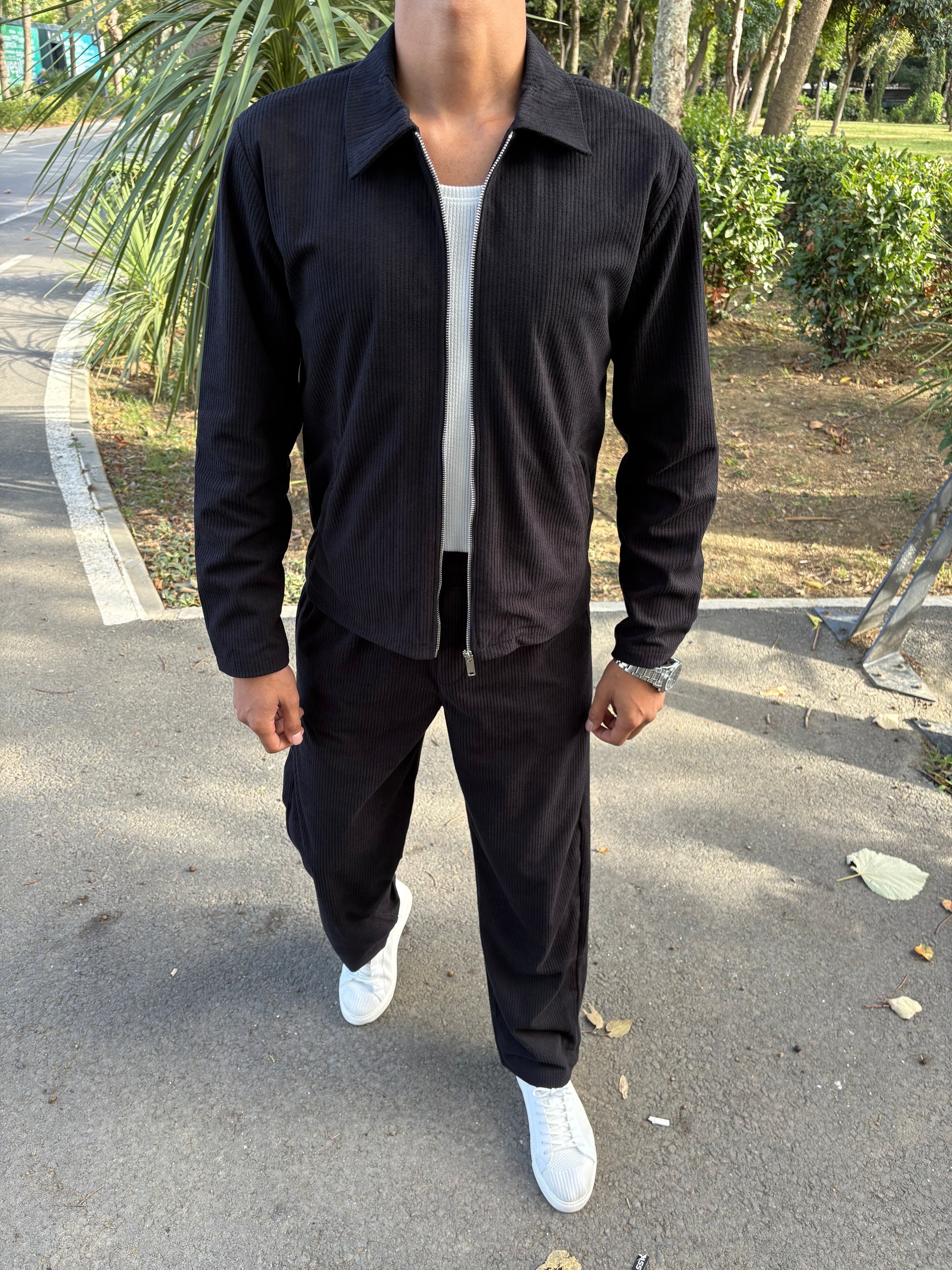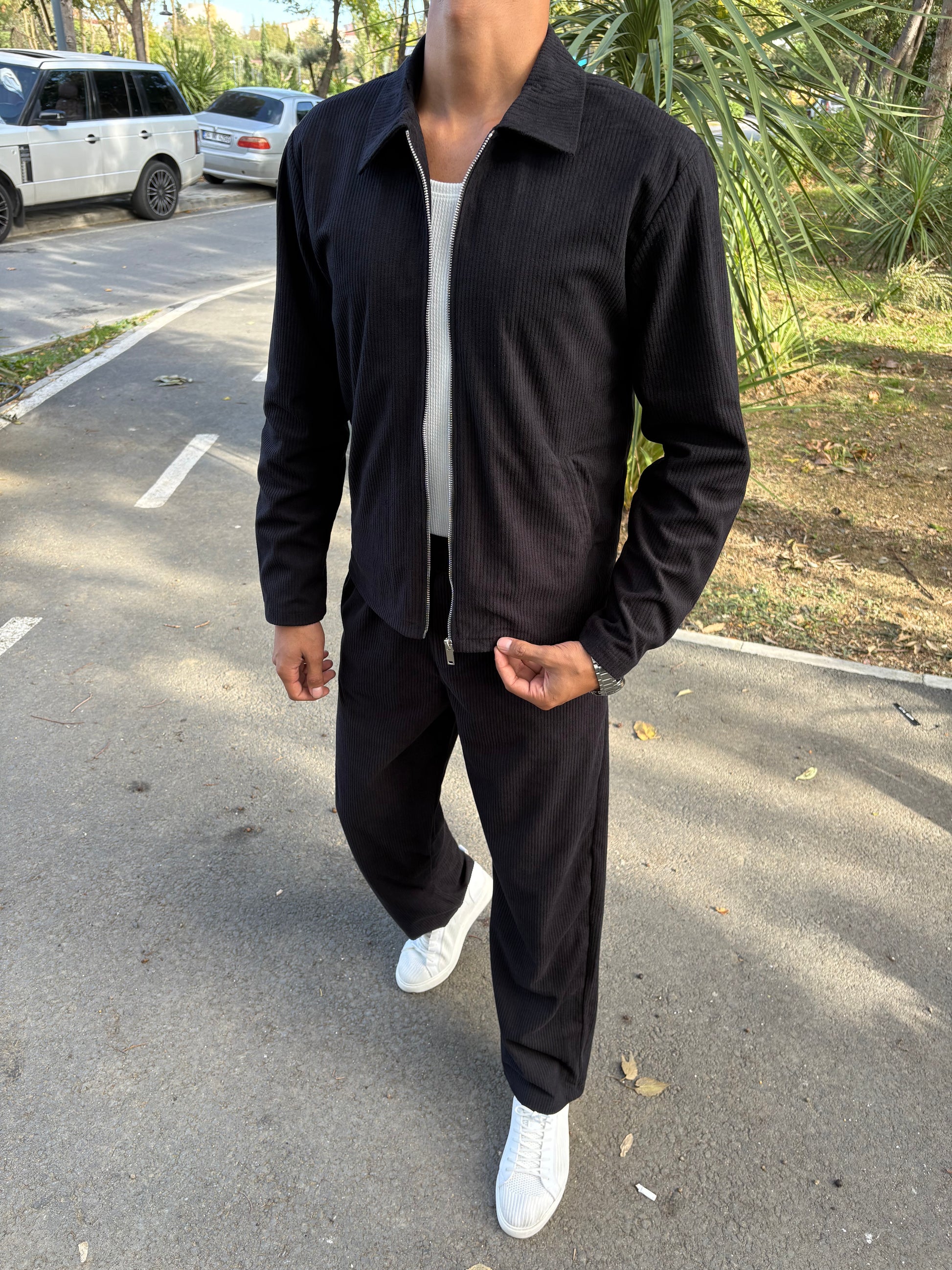 KIŞLIK KADİFE CEKET'Lİ TAKIM SİYAH