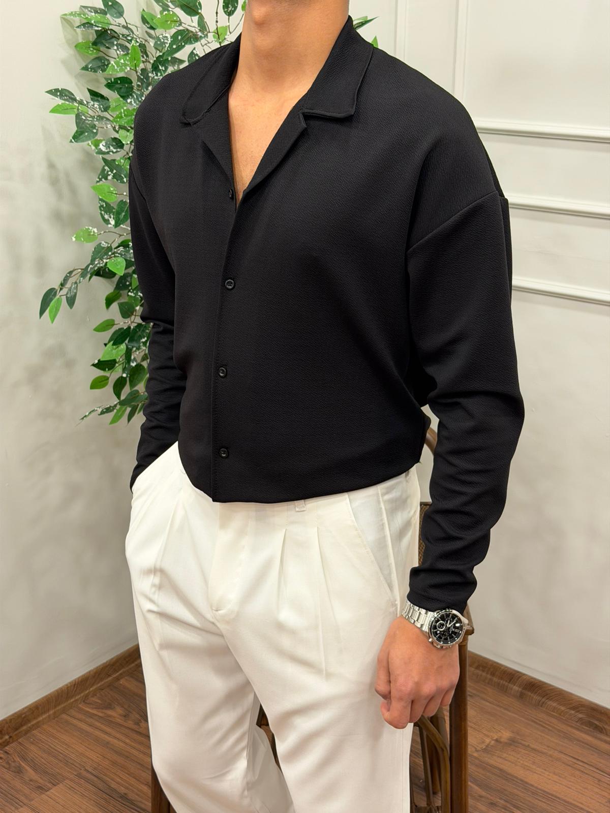 KREP UZUN KOL GÖMLEK SİYAH