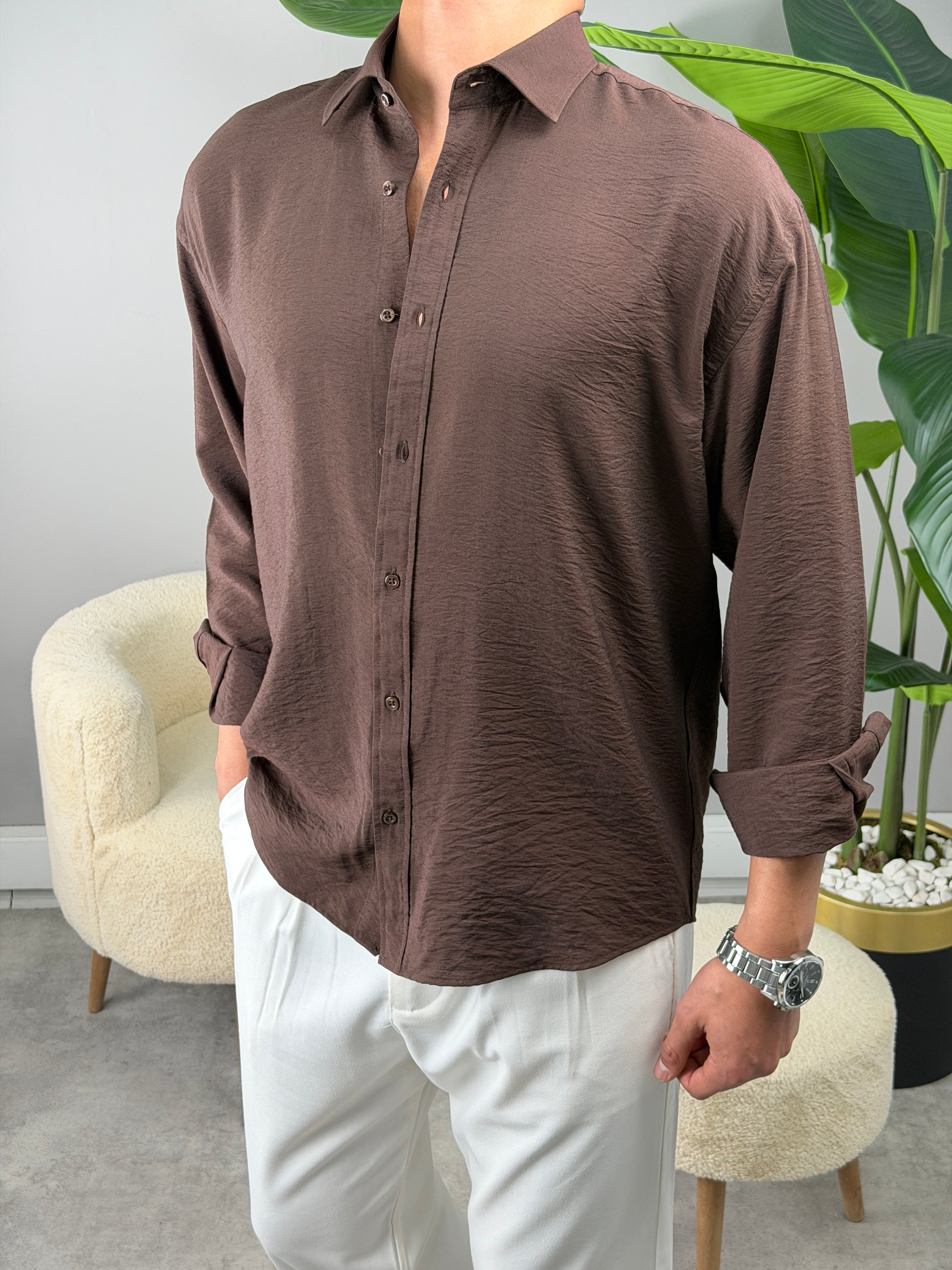 MODAL KUMAŞ GÖMLEK KAHVE