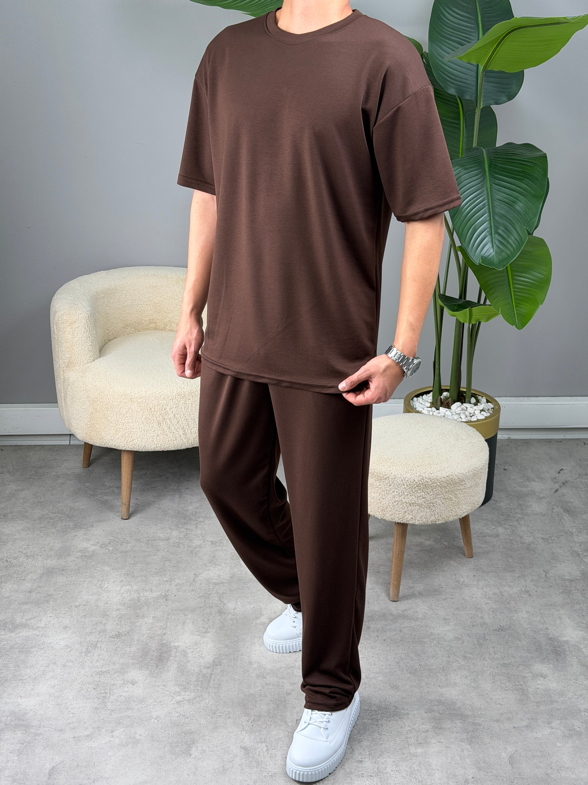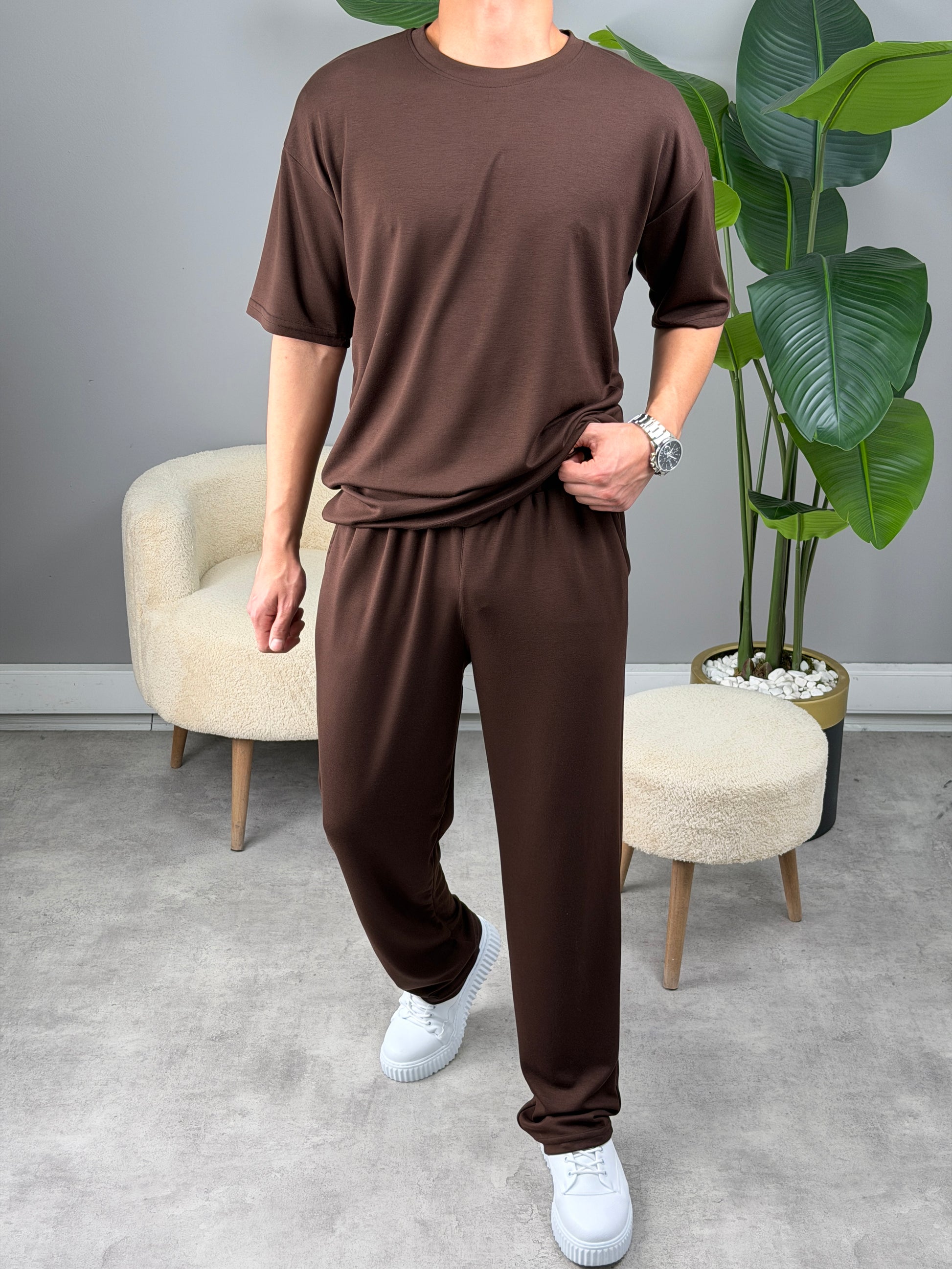 OVERSİZE MODAL KUMAŞ BASİC TAKIM KAHVE