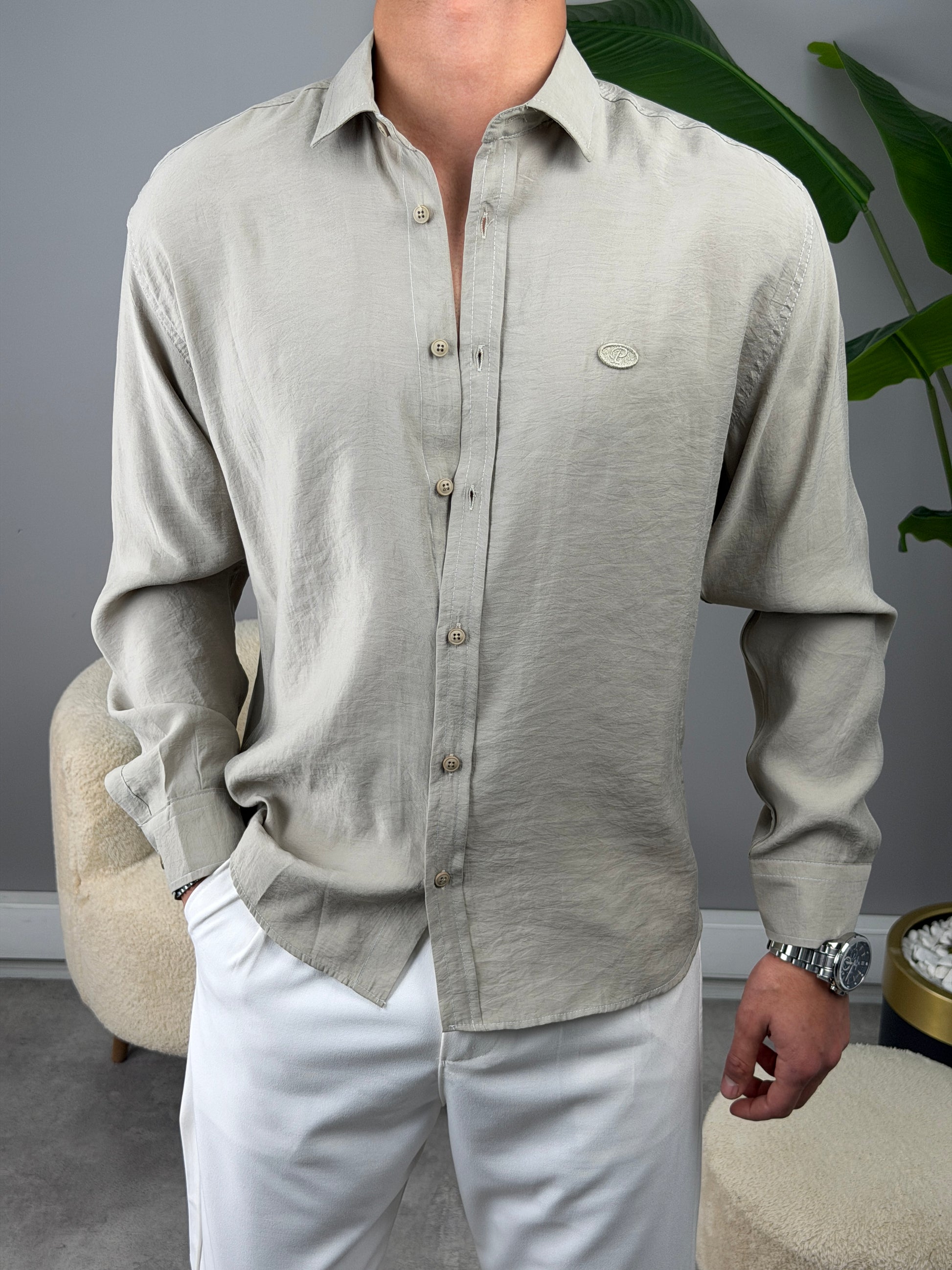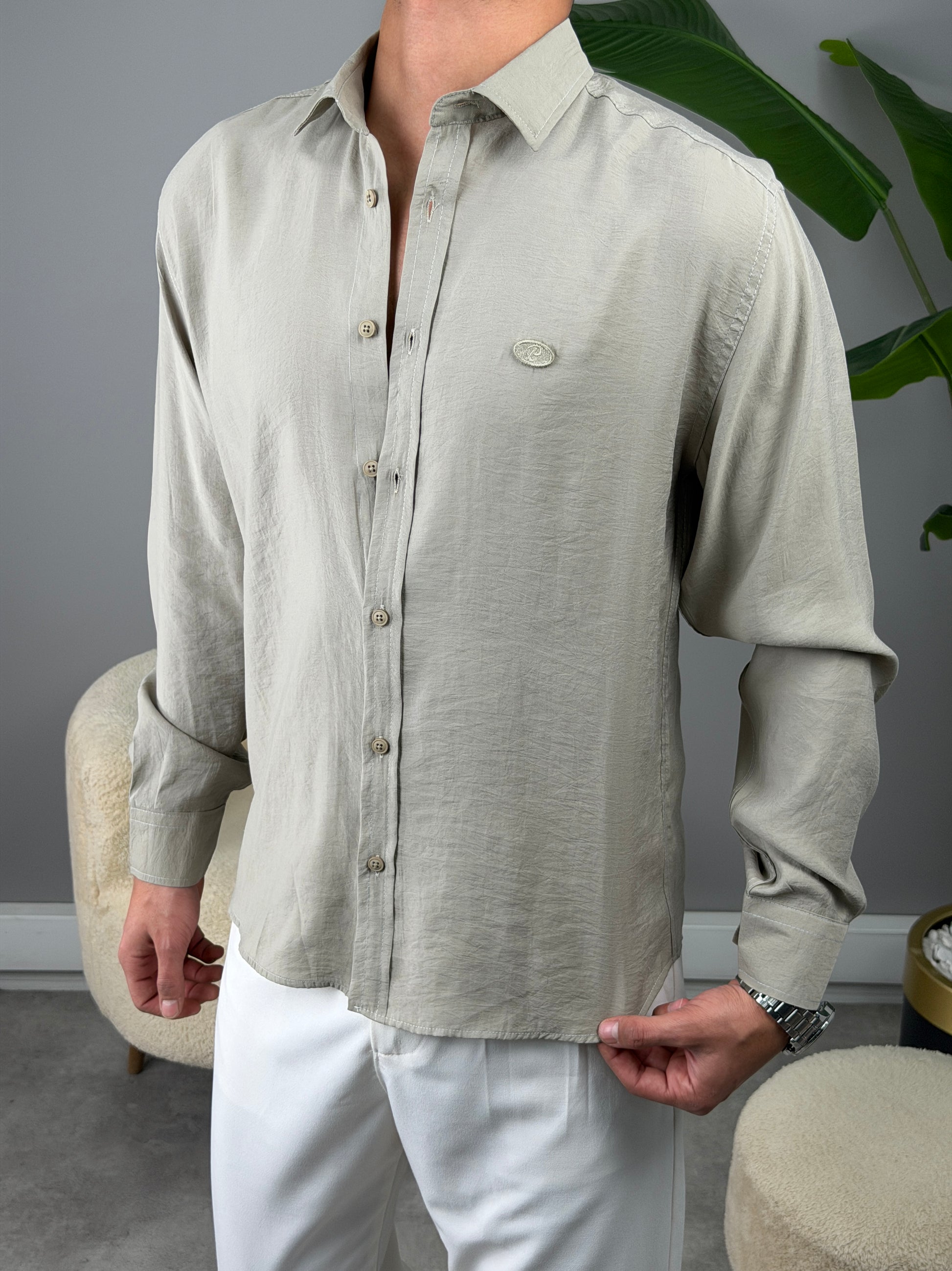 P NAKIŞ BASKILI MODAL GÖMLEK YEŞİL