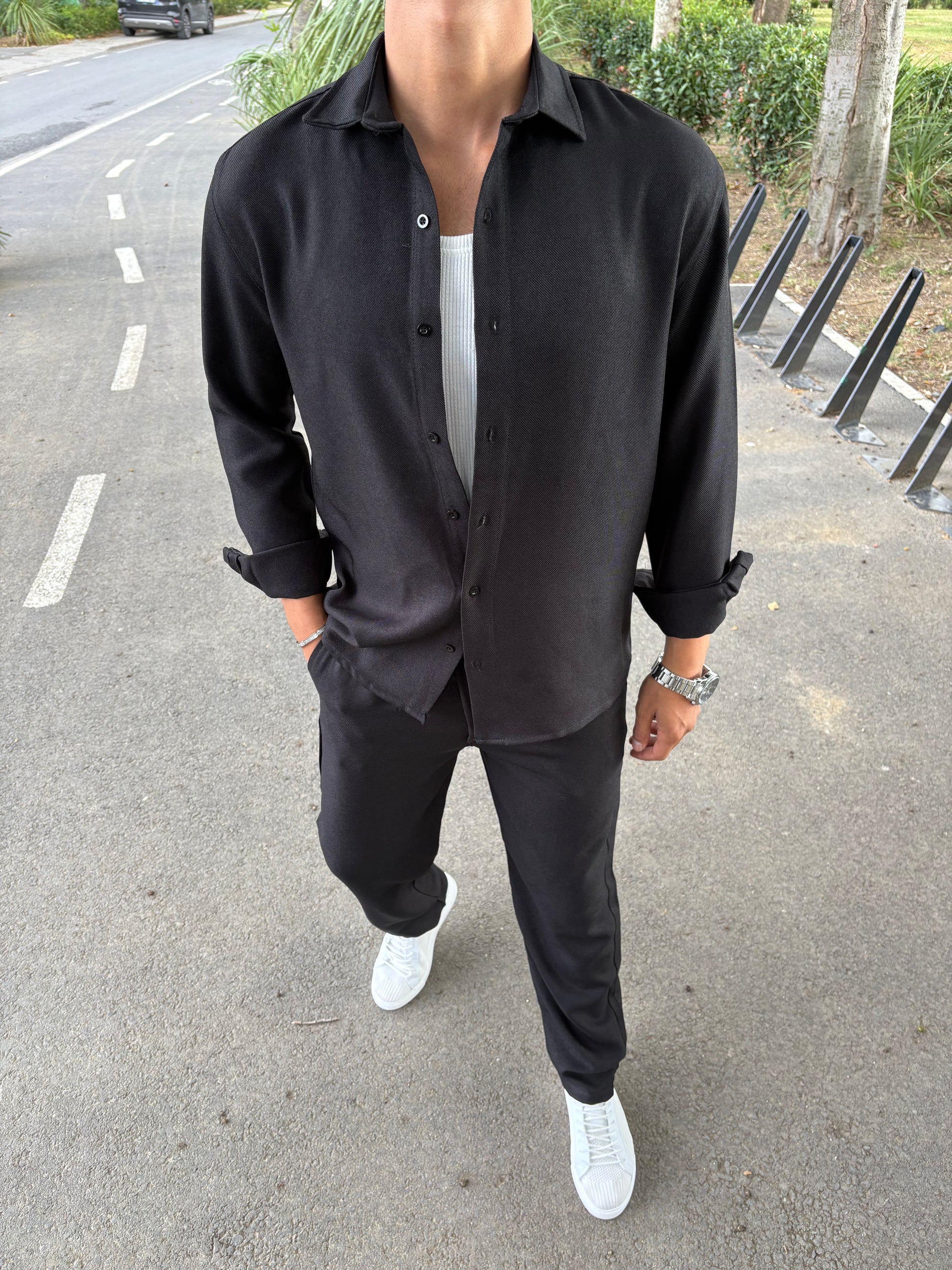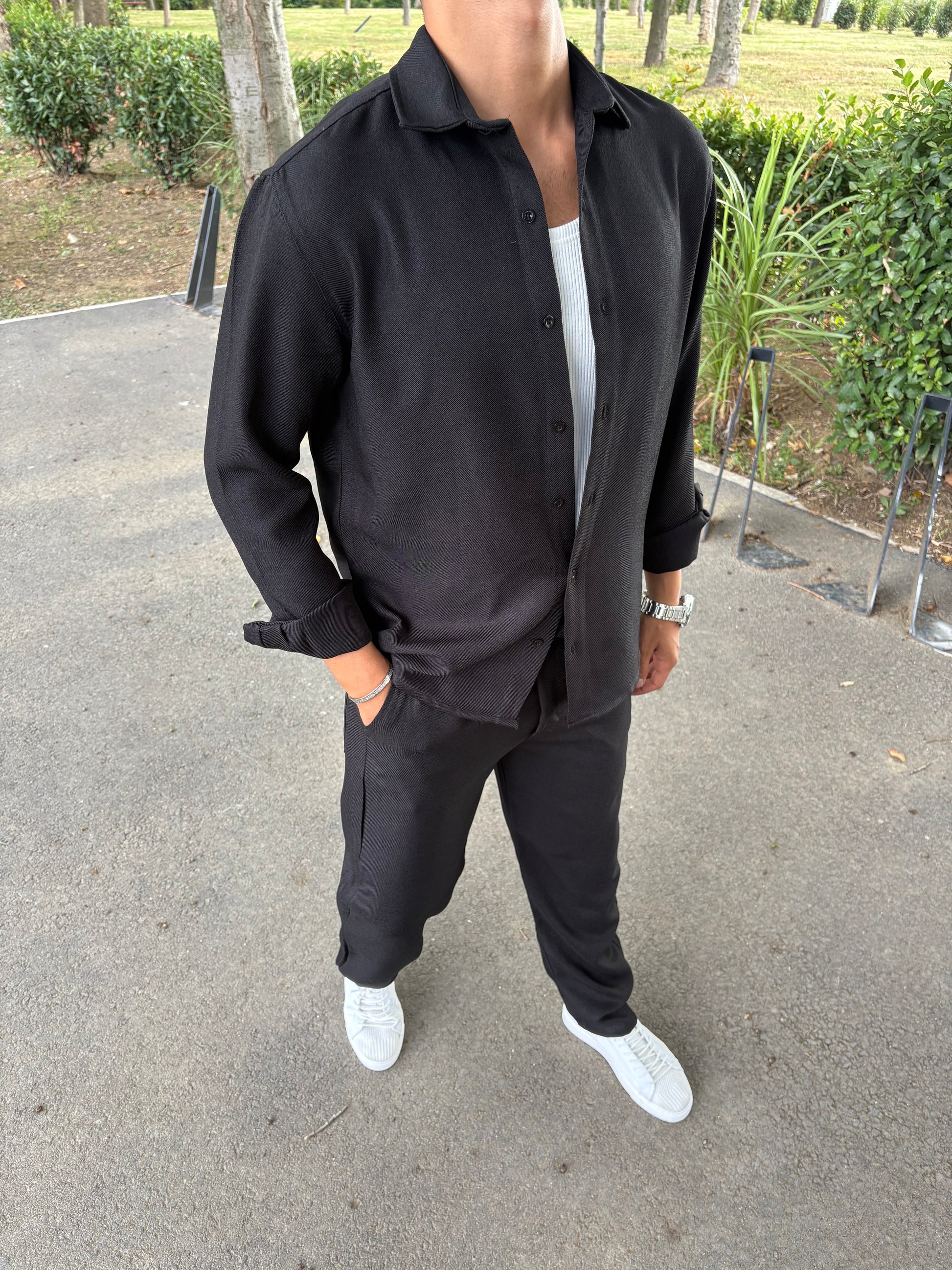 PAMUK ÖRME GÖMLEKLİ TAKIM SİYAH