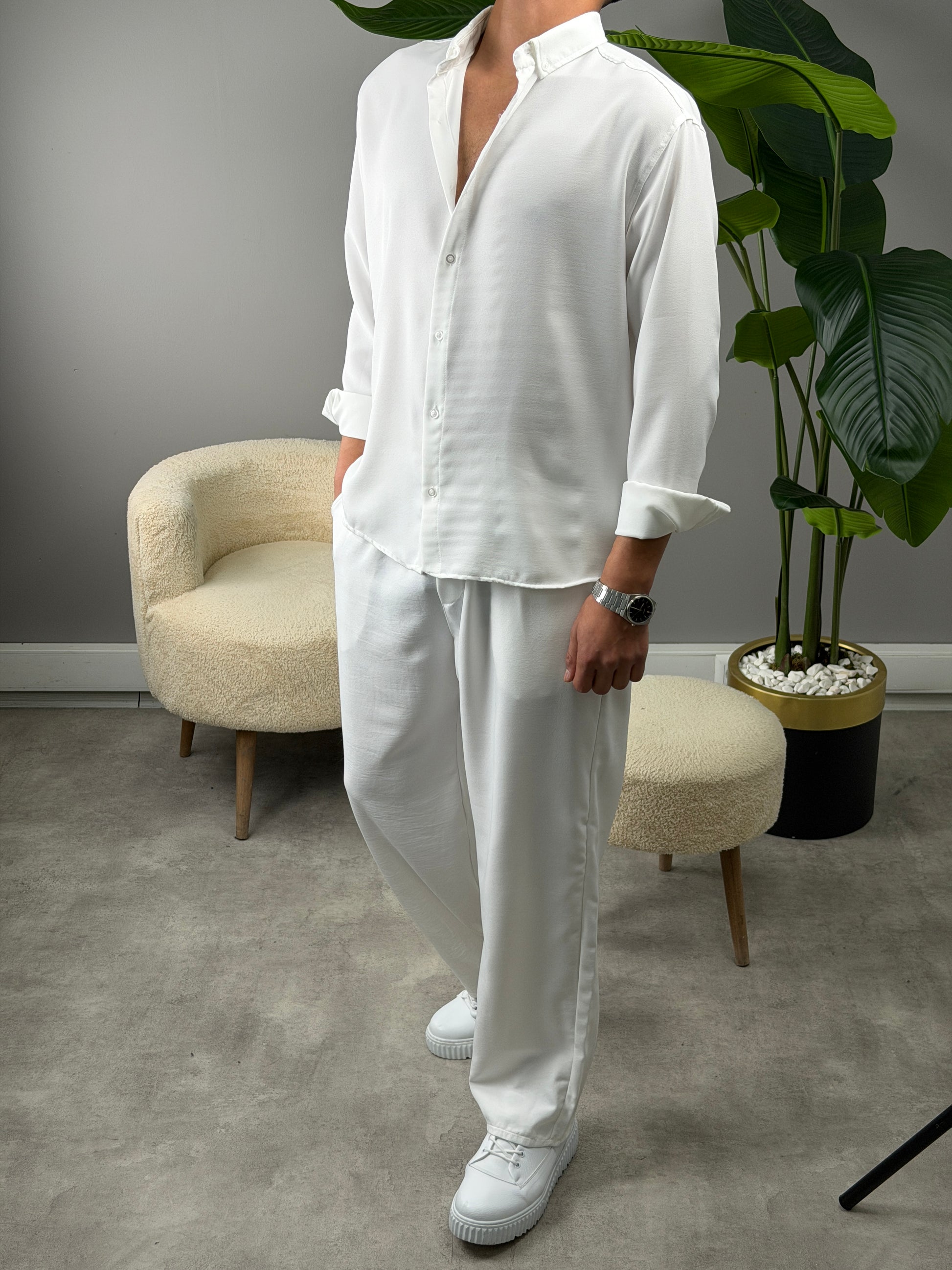 PAMUKLU KETEN TAKIM BEYAZ