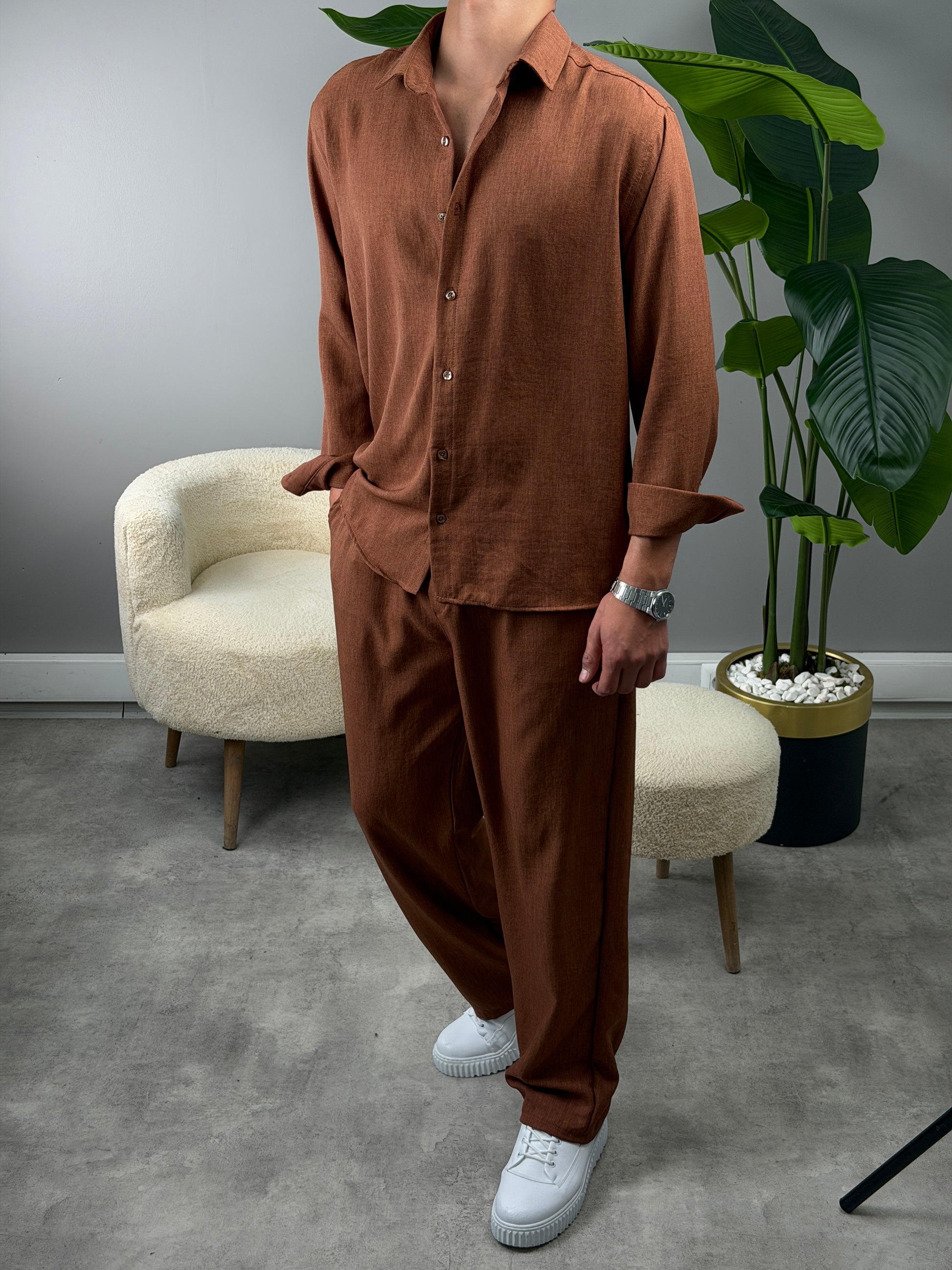 PAMUKLU KETEN TAKIM KAHVE