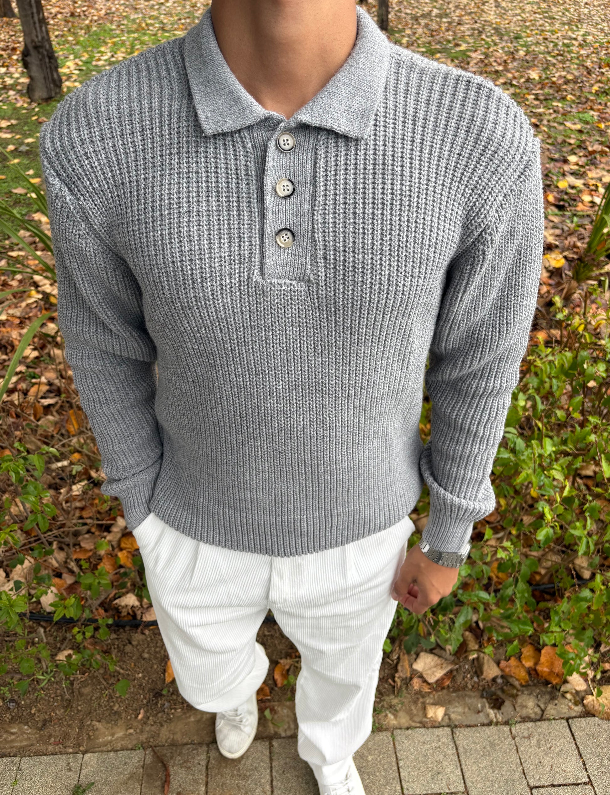 PREMİUM KALİTE DÜĞMELİ POLO YAKA OVERSİZE TRİKO GRİ