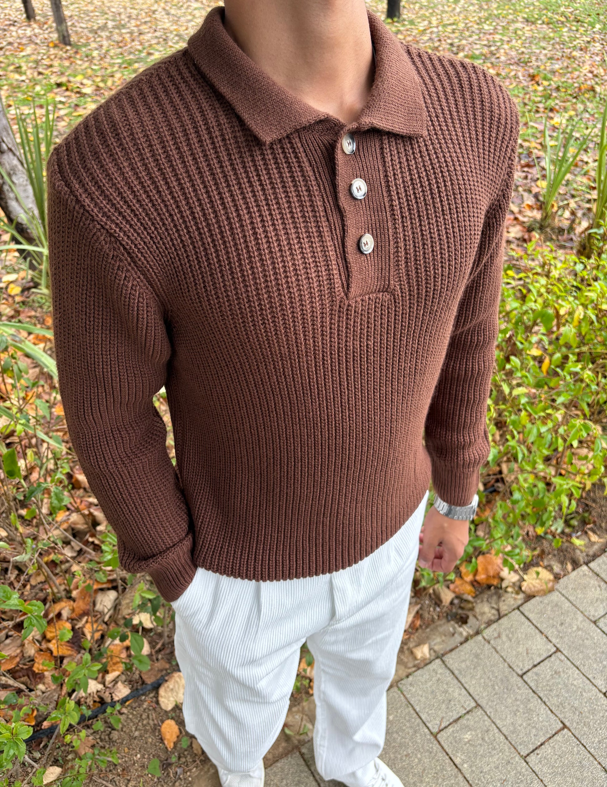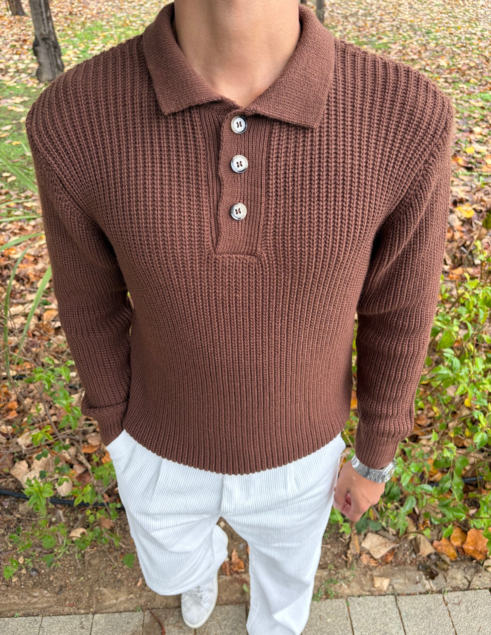 PREMİUM KALİTE DÜĞMELİ POLO YAKA OVERSİZE TRİKO KAHVE