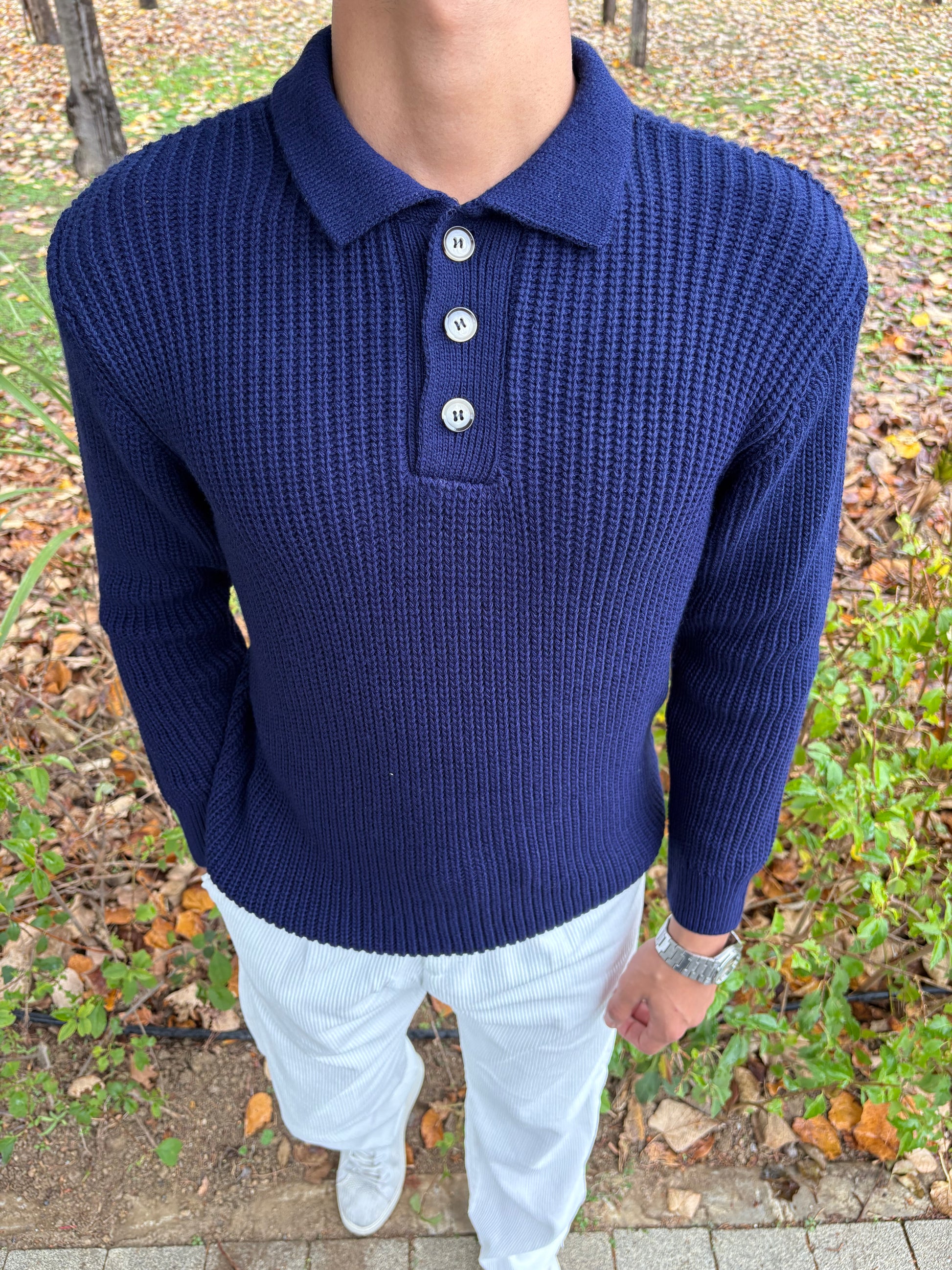 PREMİUM KALİTE DÜĞMELİ POLO YAKA OVERSİZE TRİKO LACİVERT