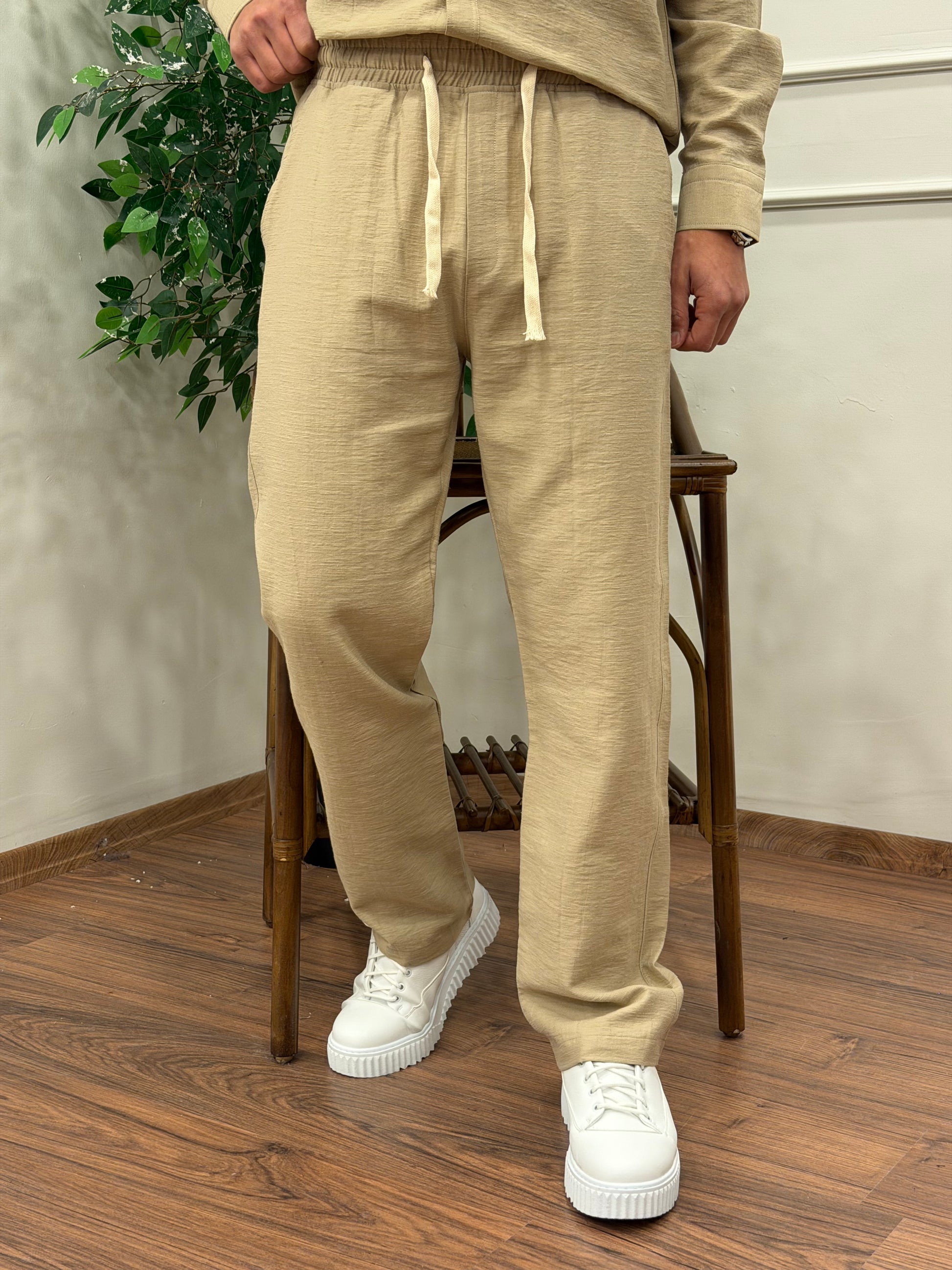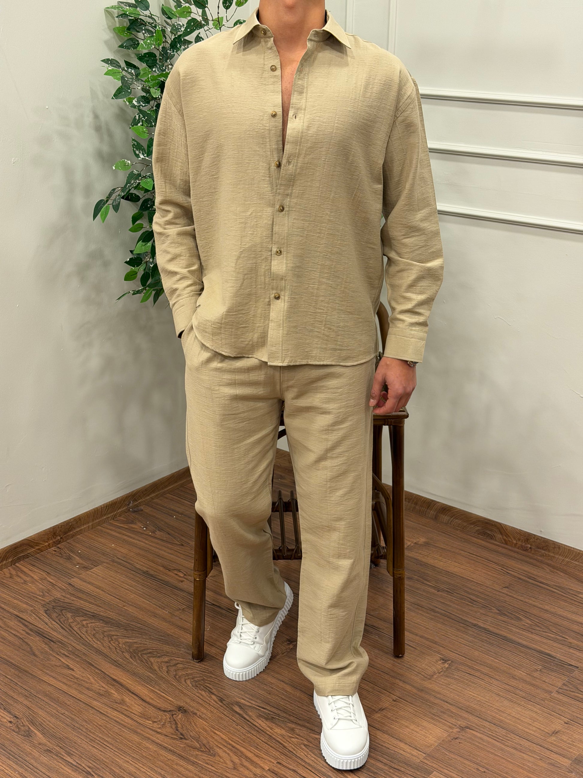 VİSKON KUMAŞ GÖMLEKLİ TAKIM BEJ