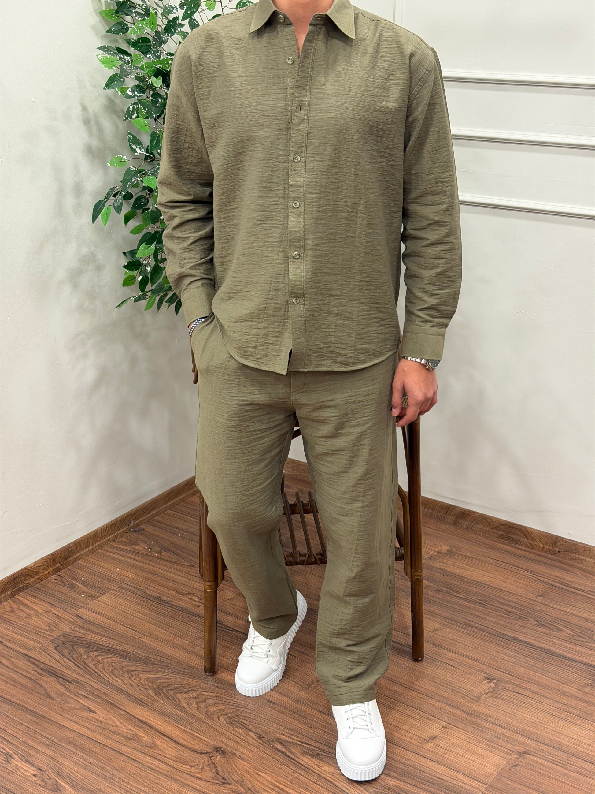 VİSKON KUMAŞ GÖMLEKLİ TAKIM HAKİ YEŞİLİ