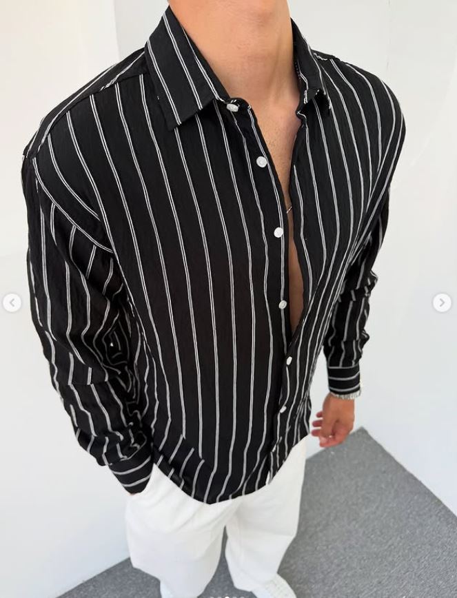 YIKAMALI UZUN KOL KETEN GÖMLEK SİYAH