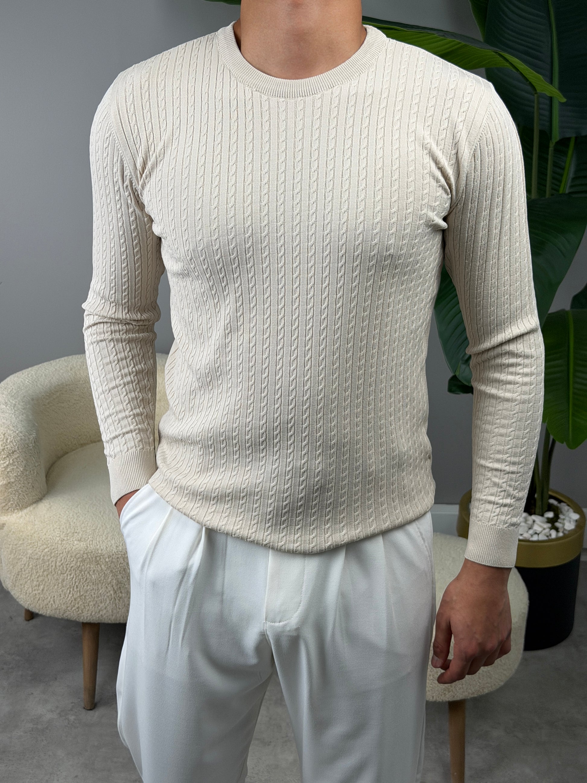 ZİNCİR DESEN BİSİKLET YAKA TRİKO SWEATSHİRT BEJ